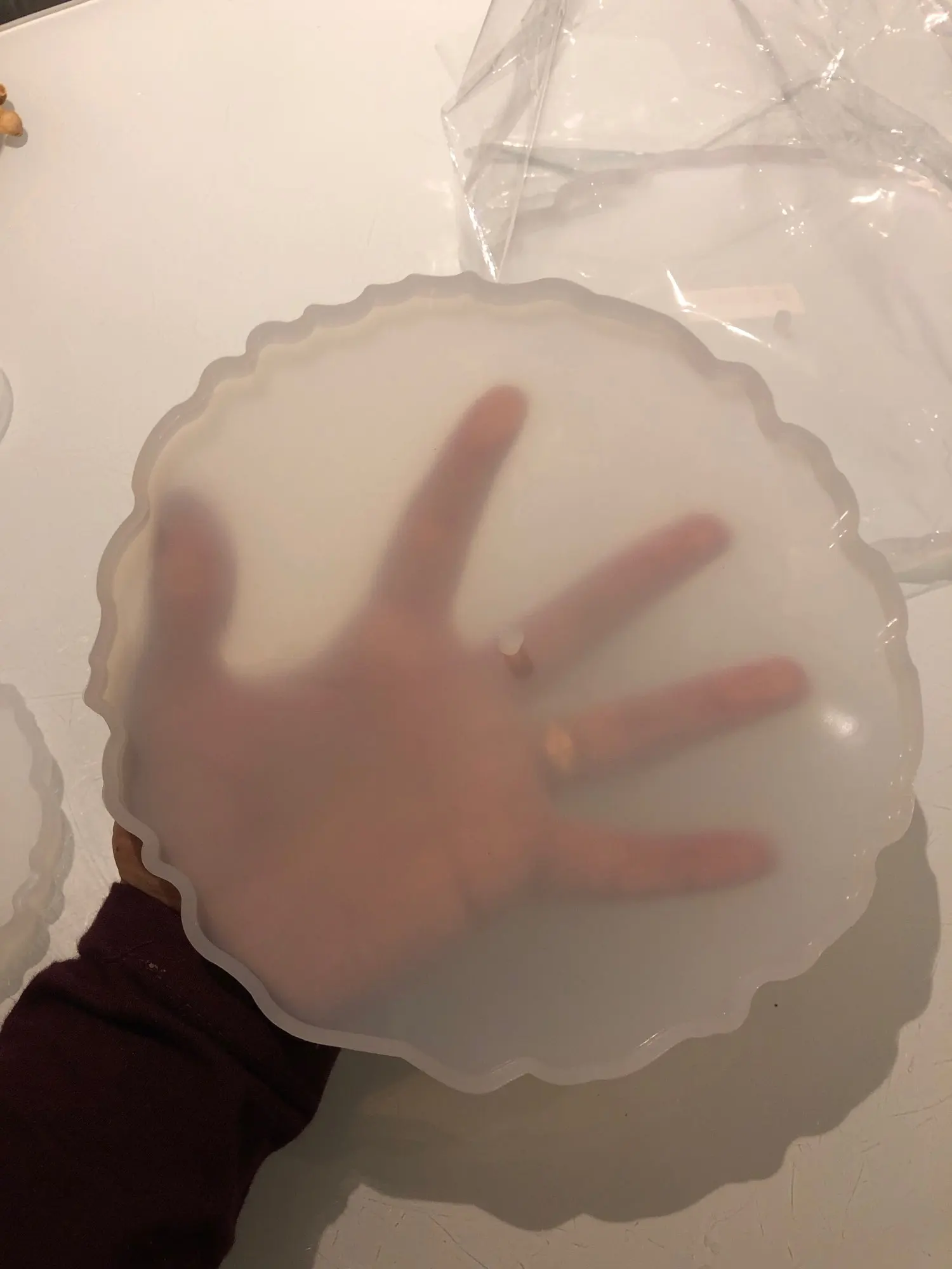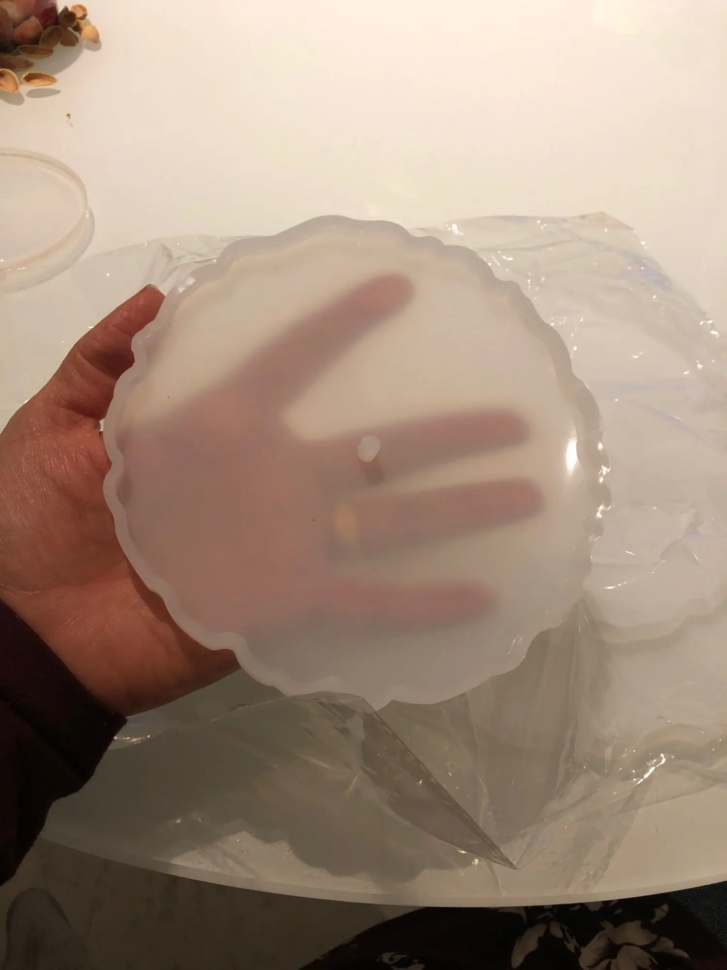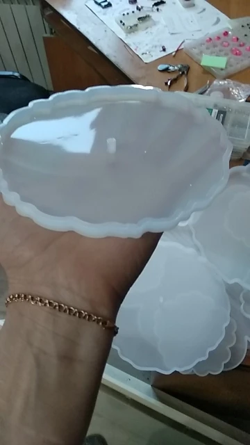 Форма глянцевая, но на ней есть небольшие зарапины.. Думаю, что на готовом изделии они будут видны и прийдется делать дополнительную заливкку...