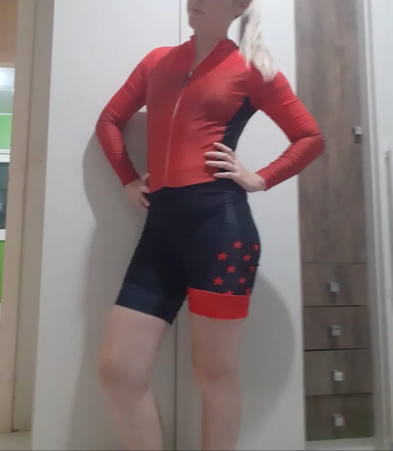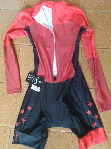Товар в соответствии с указанным! Размер, указанный в таблице, соответствует используемому размеру. Лайкра выглядит очень жесткой. Все еще не используется для езды на велосипеде. Доставка очень быстрая, через 10 дней после покупки!