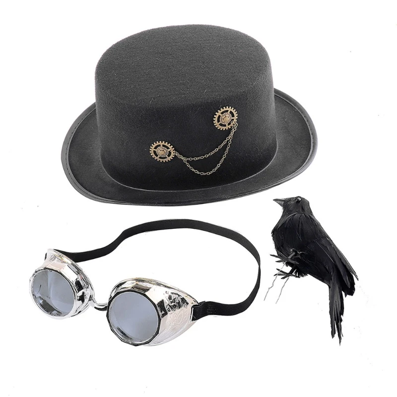 В список входят: 1 черная шляпа, 1 Съемный очки и 1 озорная ворона. Один размер подходит для большинства мужчин и женщин.