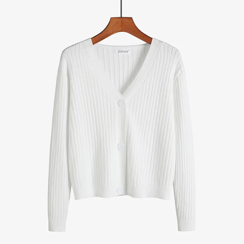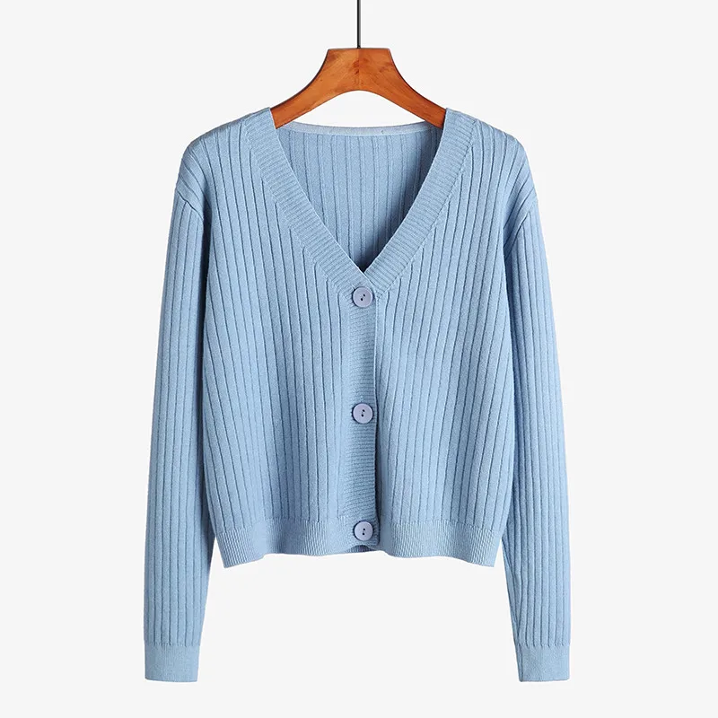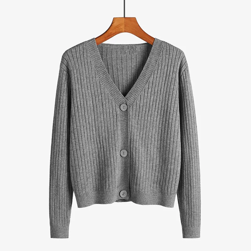 Женский вязаный кардиган, повседневный короткий кардиган с V-образным вырезом и длинным рукавом, верхняя одежда на весну-осень