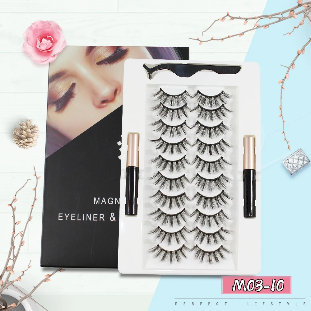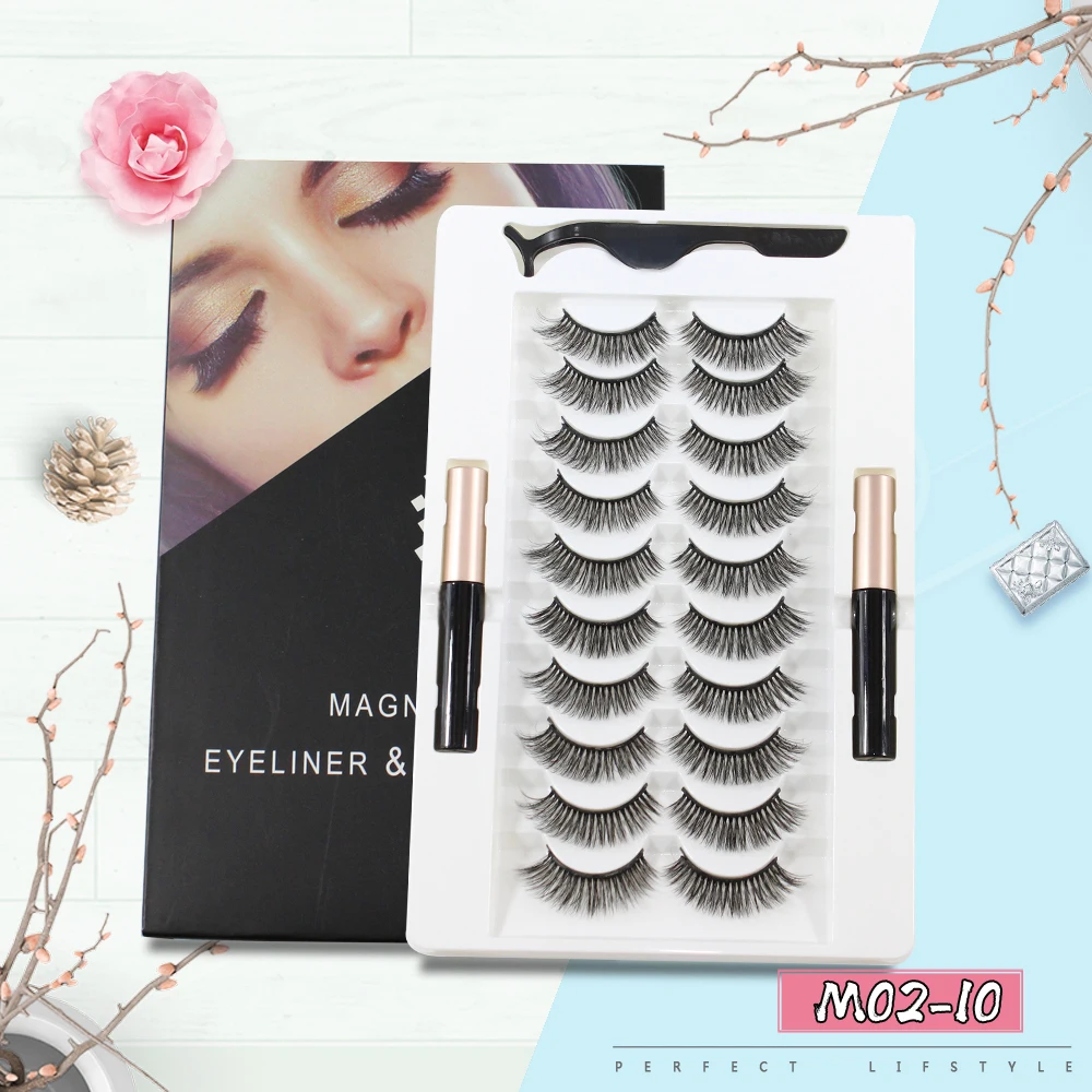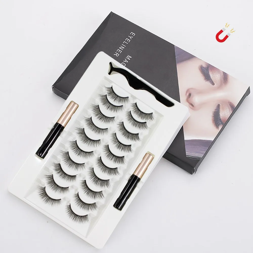 Магнитная подводка для глаз с Комплект ресниц-магнитные ресницы и комплект подводки для глаз содержит 2 бутылки подводки для глаз, зеркальную коробку, пинцет и 10 пар различных стилей ресниц, чтобы удовлетворить ваши желания.