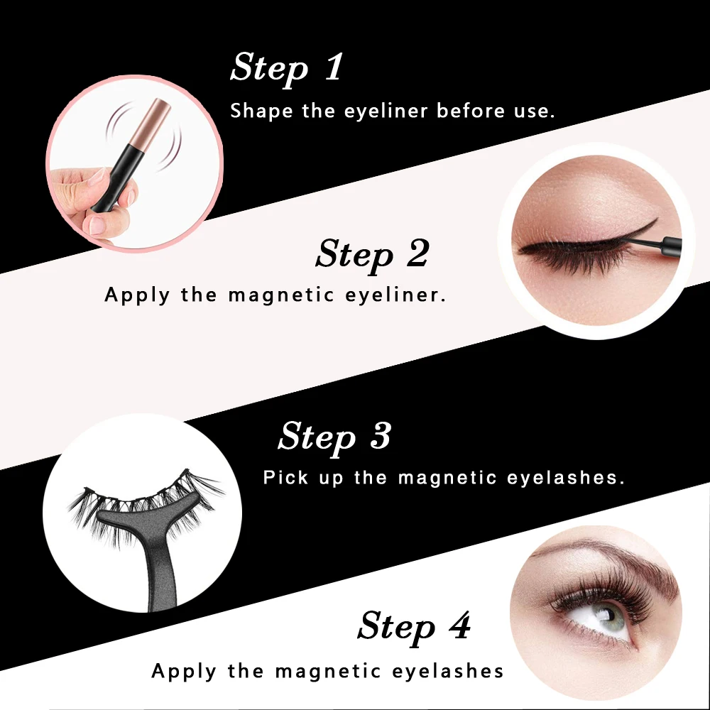 Легко носить с собой-наш Магнитный подводка для глаз с Комплект подводки для глаз не только обеспечивает несколько стилей 3D Магнитные ресницы для удовлетворения потребностей различных случаев, но и обеспечивает зеркальную коробку, которая может положить две пары ресниц. Вы можете пойти куда угодно с ресницами, которые вам нужны сегодня, вместо большой посылка.