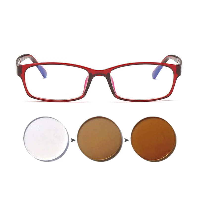 ЭтоФотохромныйОчки по рецепту дляБлизорукостьЛинзы будут прозрачными и бесцветными в помещении или в темных местах, но они изменят цвет на улице или на солнце, чтобы защитить ваши глаза от сильного светильник.