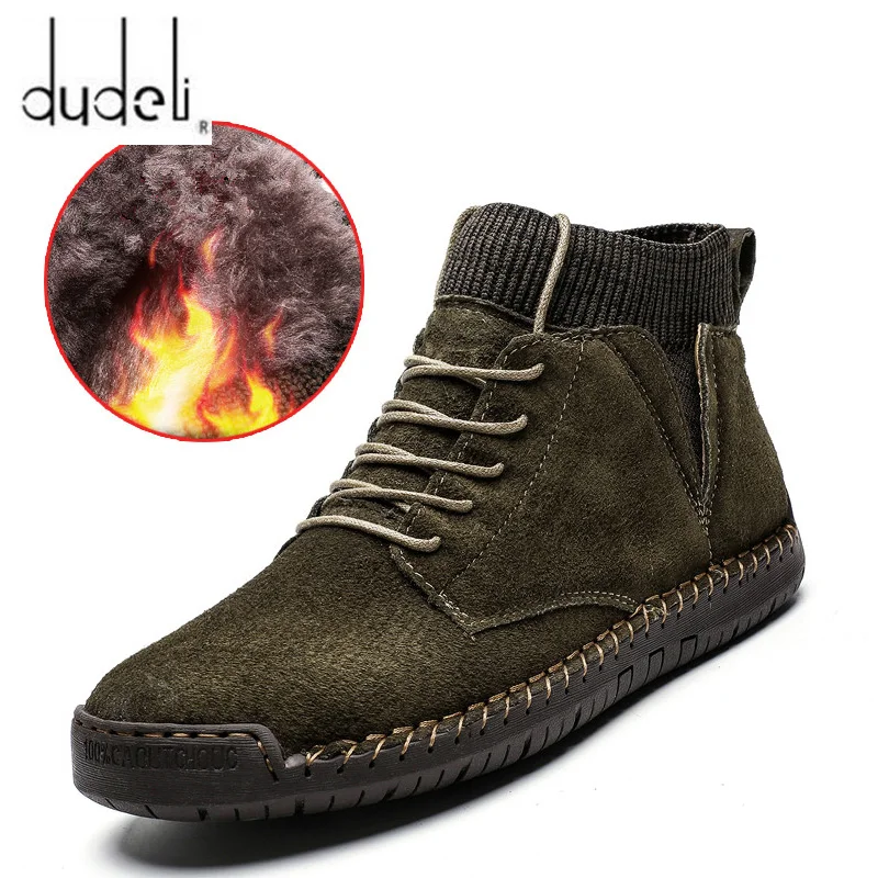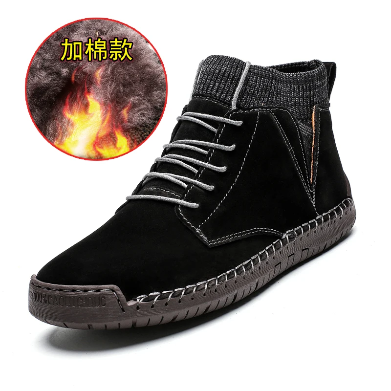 Мужские кожаные ботинки, зимние ботинки с плюшевой подкладкой, теплая обувь, мужские ботильоны для снега, удобная обувь мужские защитные рабочие ботинки