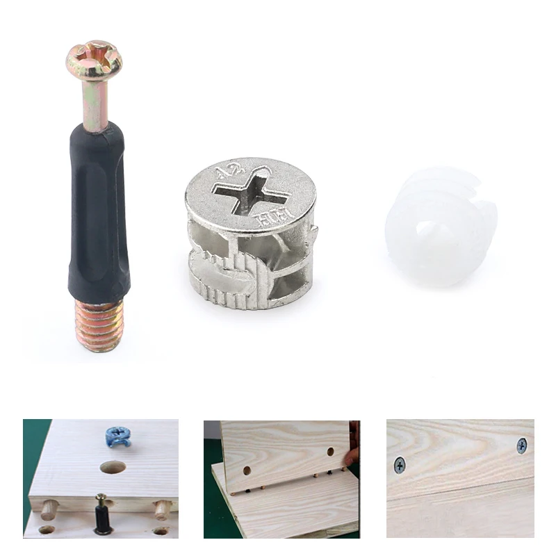 [Набор мебельной фурнитуры 3 в 1]: идеальный твердый набор соединений для мебели, шкафа, ящика, комода, нейлоновые предварительно вставленные гайки, придерживаясь принципа расширения для идеальной фиксации. [Высокое качество]: кулачковый фитинг и эксцентриковое колесо изготовлены из легированной стали, а предварительно вставленные гайки изготовлены из пластика, они довольно прочные и удобные для подключения мебели. [Применение]: этот комплект соединений широко используется для всех типов мебели, шкафов, выдвижных ящиков, комодов.