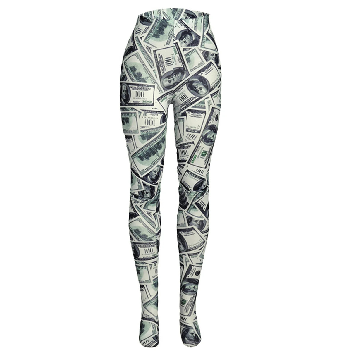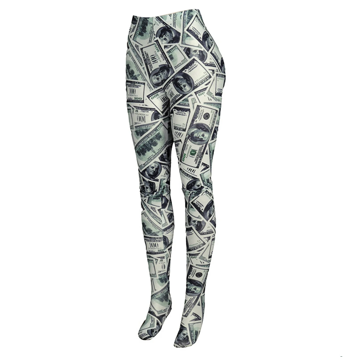 Женские пикантные обтягивающие колготки, белые обтягивающие колготки с принтом долларов и высокой талией, S M L