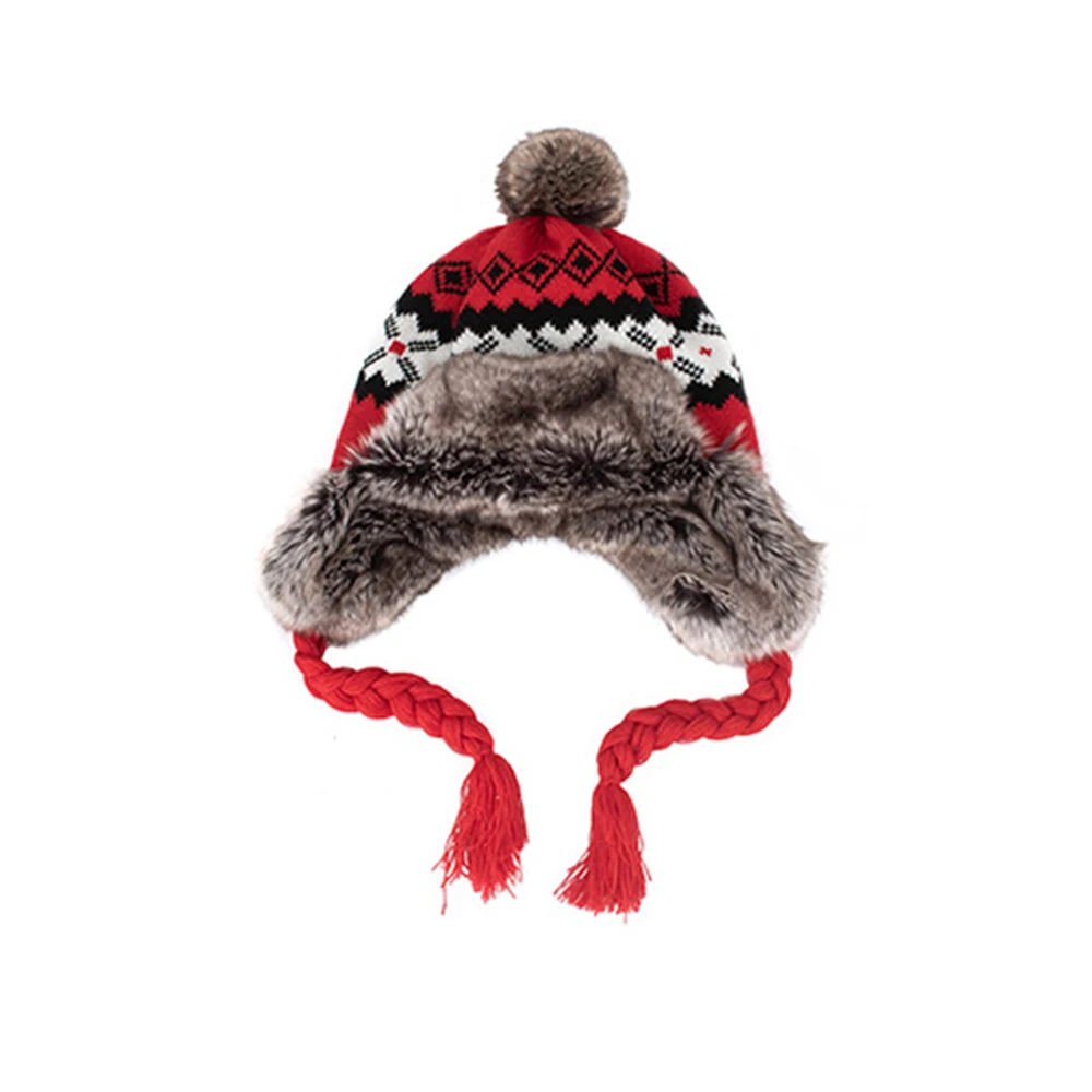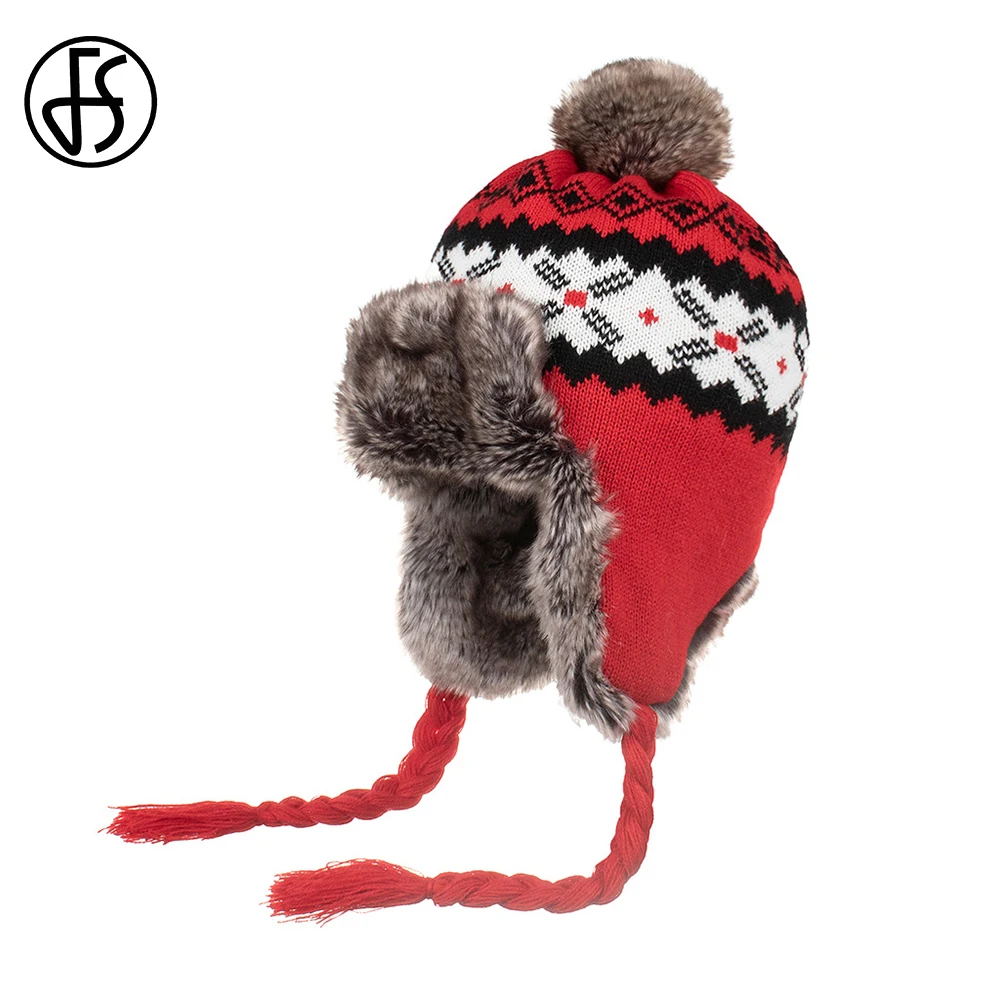 FS 2021 зимние русские шапки для мужчин и женщин, уличная теплая шапка с меховым помпоном, красная ветрозащитная шерстяная шапка-трапеция