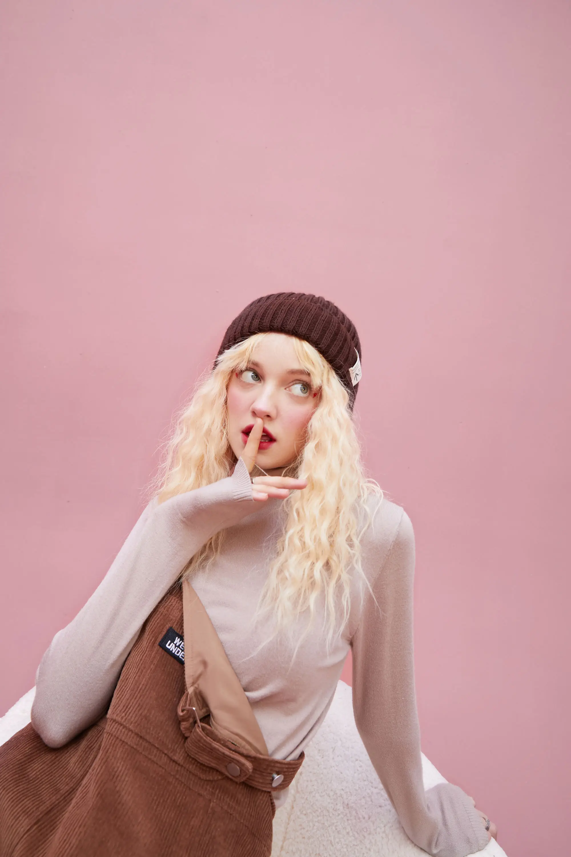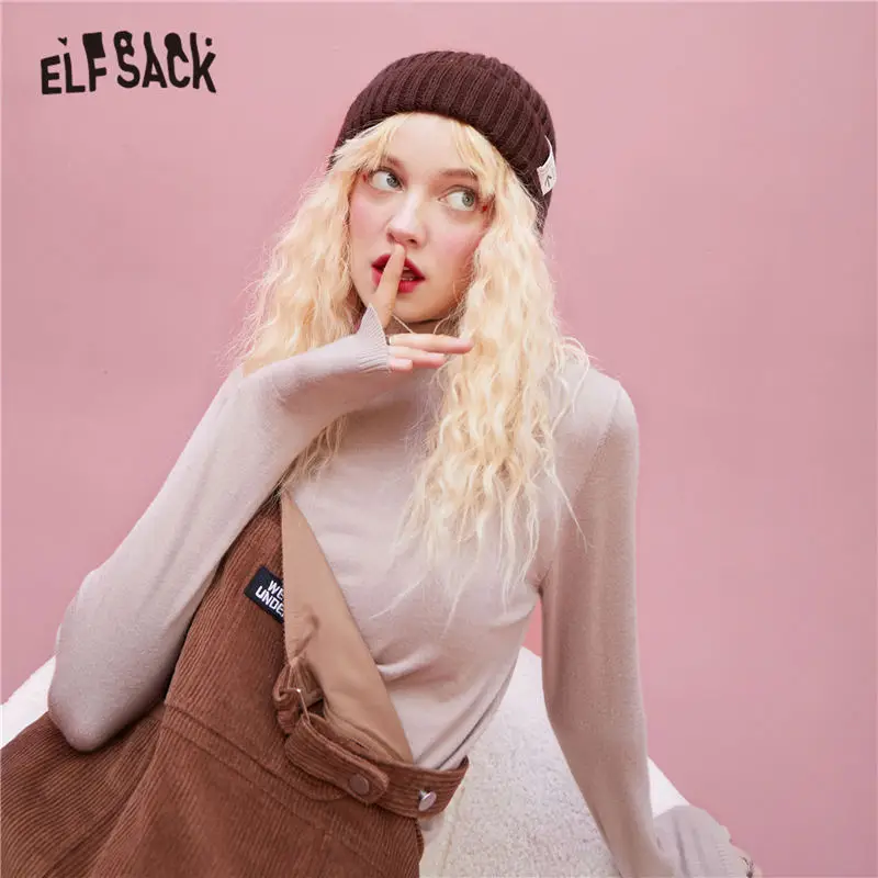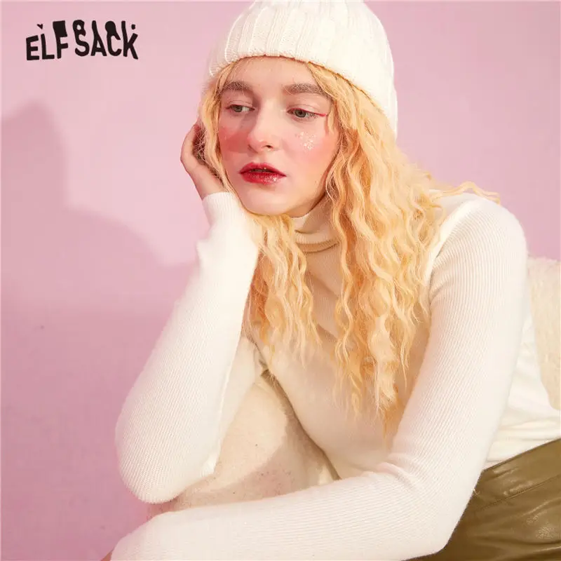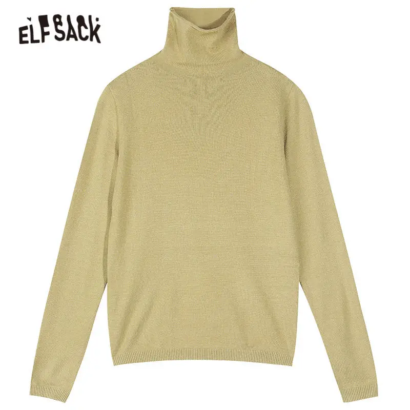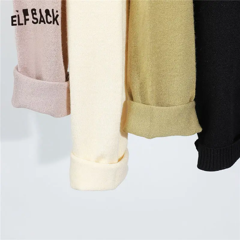 Женский вязаный пуловер ELFSACK, Однотонный свитер с длинными рукавами в Корейском стиле на осень 2020, повседневный Повседневный тонкий Топ ELF