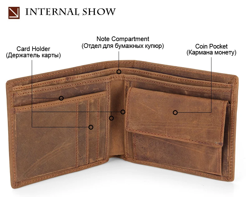 Мужские кожаные кошельки с кошельком Crazy Horse, кожаный мужской к...