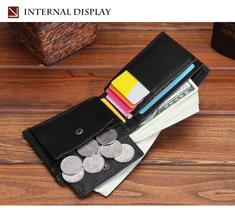 Мужской кошелек из натуральной кожи, с отделением для монет и карт