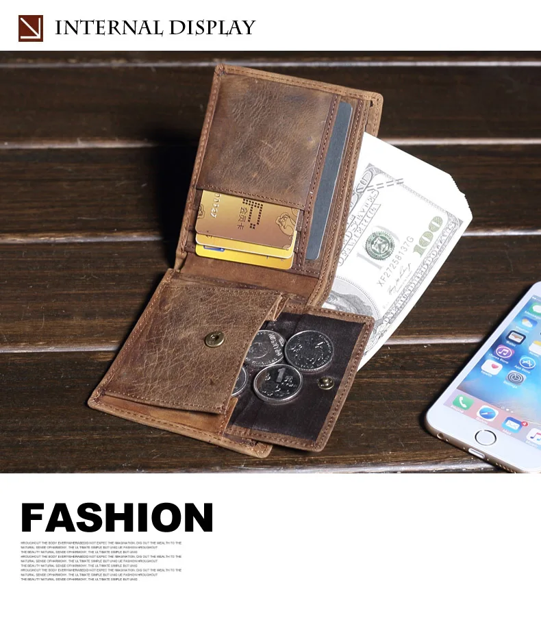 Кожаный кошелек с верхним слоем для мужчин, удобный ретро-кошелек из кожи Крейзи Хорс, винтажный мужской бумажник из натуральной кожи 50