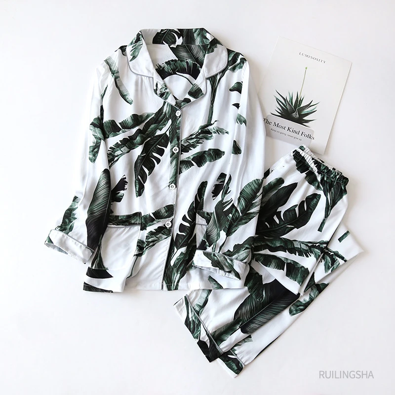 Пижама женская, из Цветочная вискозная волокна, с длинным рукавом, ...