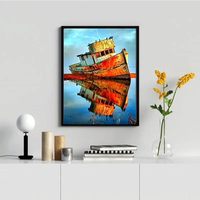 Алмазная 5D картина сделай сам, полноразмернаяквадратная Мозаика из смолы, с изображением парусника, вышивка крестиком, для украшения дома