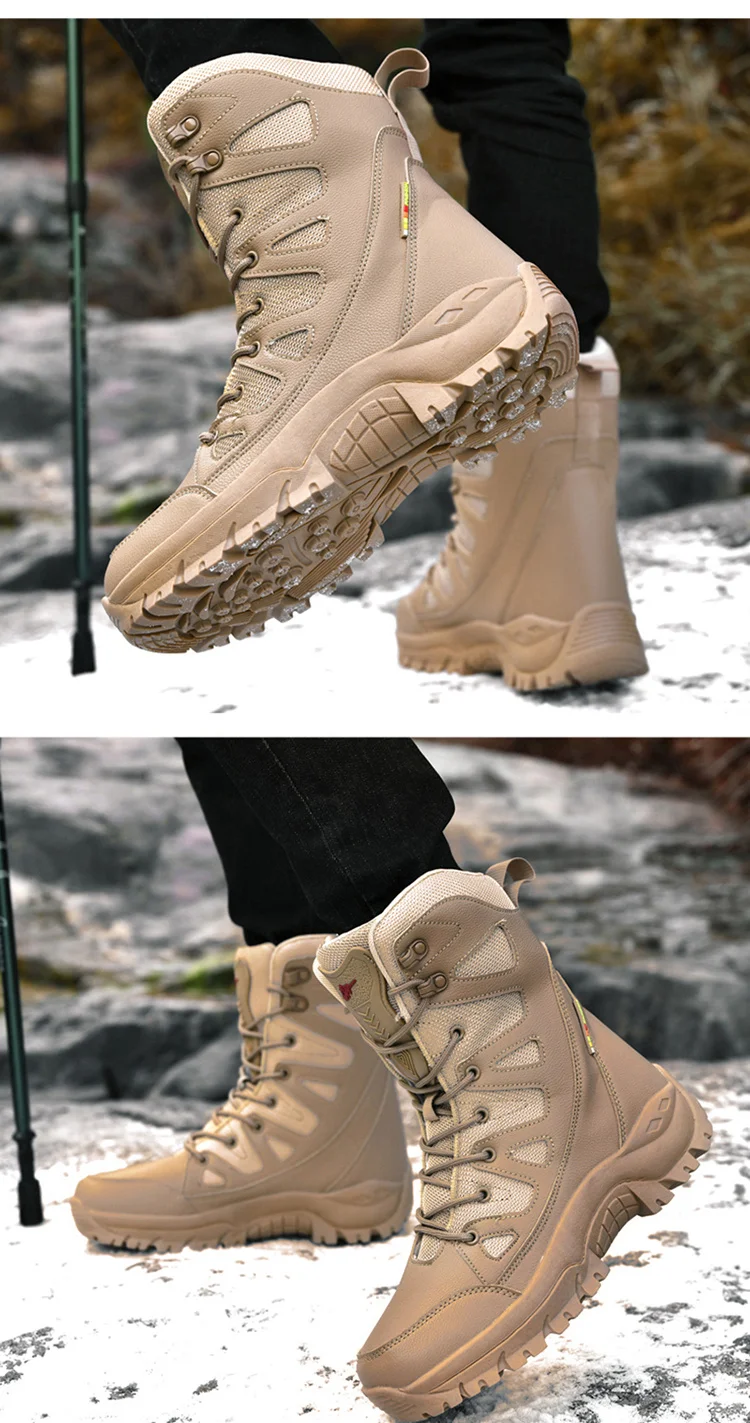 Бежевые зимние походные ботинки для улицы, парные мужские треккинговые ботинки, женская обувь большого размера, военные тактические ботинки для мужчин, ботинки для горного туризма