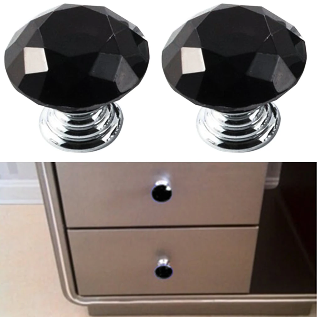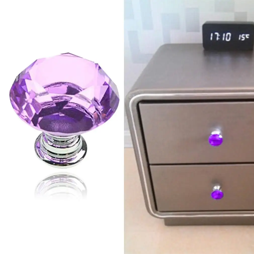 Ручки для дверей с кристаллическим стеклом и алмазным покрытием, 30 мм, ручки для ящиков шкафов + винтовая фурнитура для дверей шкафов, прозрачныечерныерозовыефиолетовые
