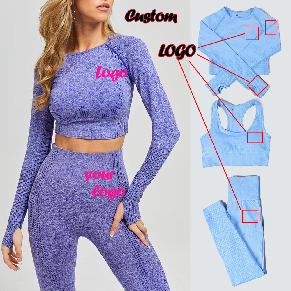 3 шт.компл. женский бесшовный комплект для йоги для фитнеса спортивные костюмы для тренажерного зала с логотипом спортивная одежда кроп Топ Леггинсы для бега тренировочные штаны