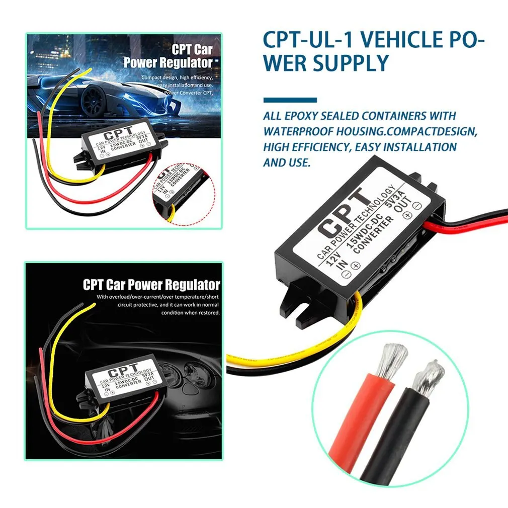 CPT-UL-1 Водонепроницаемый регулятор напряжения постоянного токапостоянного тока от 12 В до 5 В, 3 А, 15 Вт, Автомобильный светодиодный дисплей, регулятор мощности CPT, автомобильный регулятор мощности