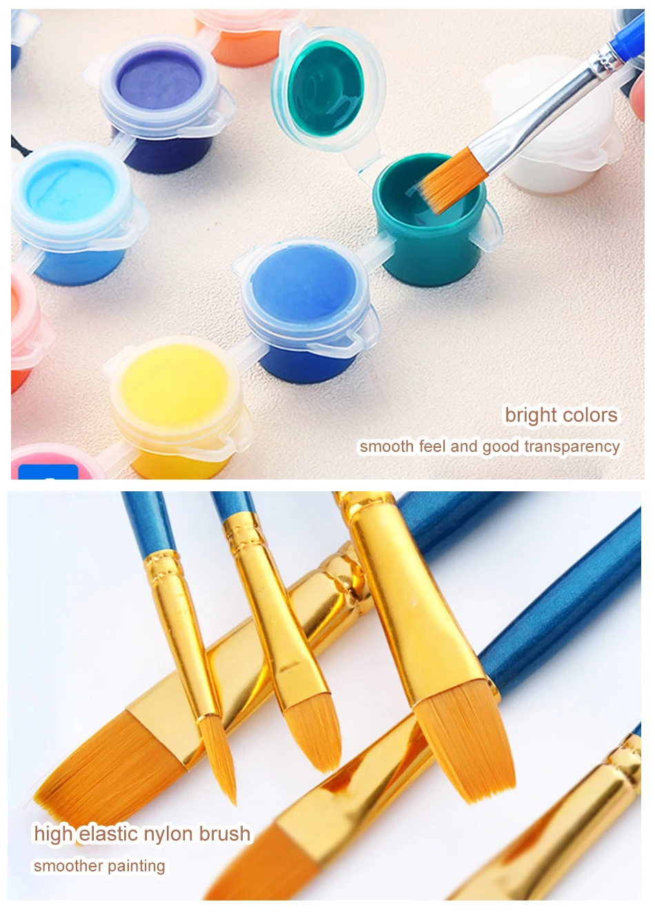 картина на 24 кольори, якісний холст, добре пігментовані варби, легко наносяться. єдиний мінус немає тоненької кісточки. на мілких деталях складно малювати тими що у комплекті, довелося шукати свої. продавець дуже комунікабений. перша посилка застряла десь у Китаї, продавець запропонував відправити знову. я погодилась за умови що він продовжить термін очікування. відповідно доставка була більше 3 місяців, але претензій до продавця не маю, тому оцінку понижувати не буду. замовляла 2, одну уже намалювала, залишилось тільки натягнути на підрамник.