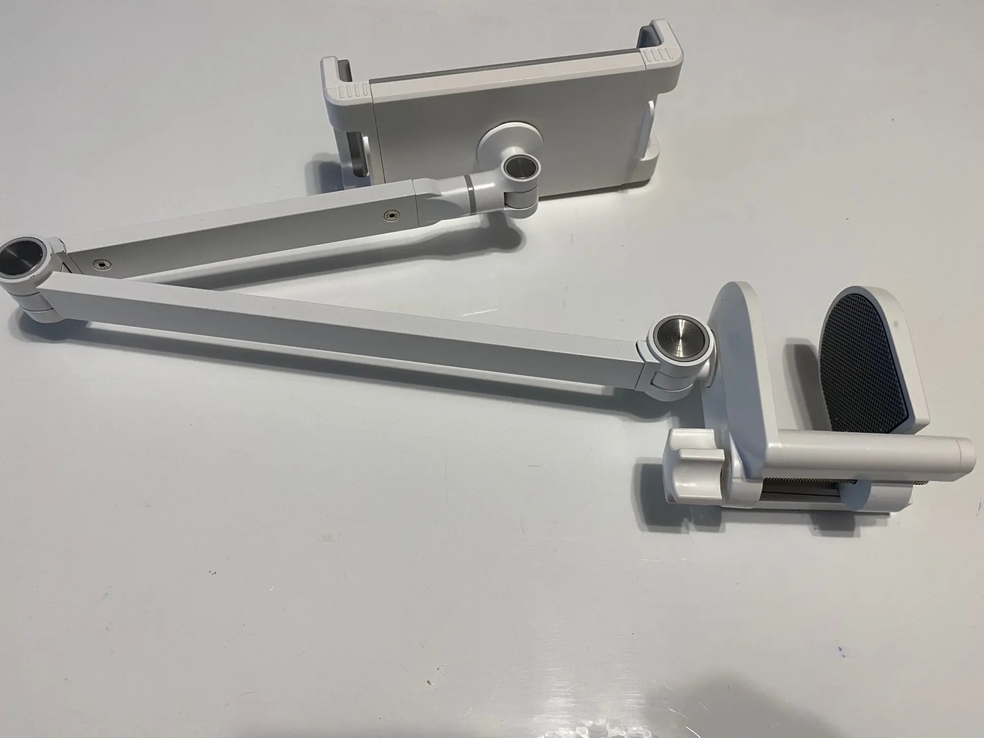 Хорошая поддержка, надежная и отлично держит ipad pro 12,9 дюйма. Это не голова и не балансирует. Все «суставы» имеют винт allen (включая ключ) и после затягивания он идеально прикреплен. Я купил 2, его соотношение цены и качества является лучшим. Быстрая доставка и хорошая упаковка. Я рекомендую это 100%, как поддержка, так и продавец. Основание идеально подходит для поверхностей толщиной 5 см или меньше! Я не прилагаю фотографии, потому что это так, как это в продавце.