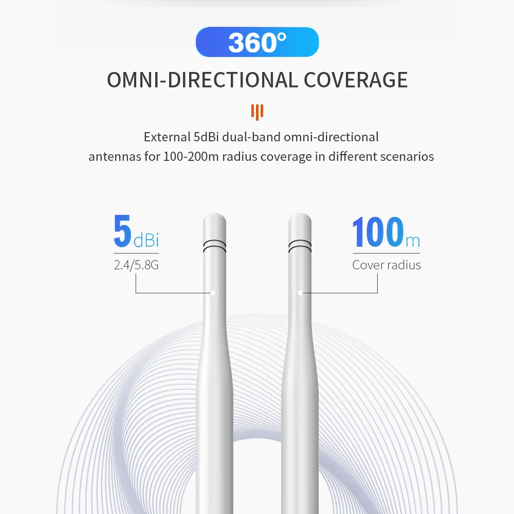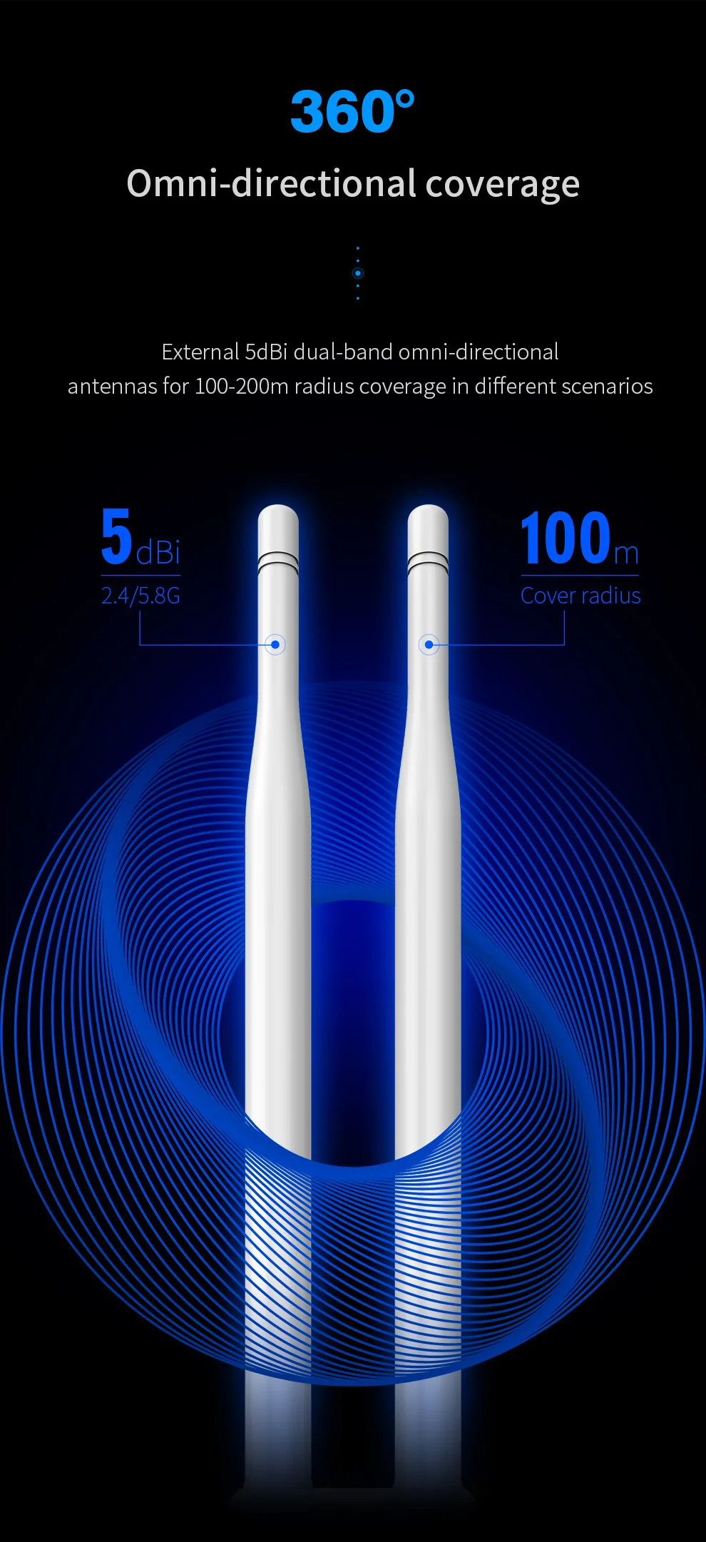 Внешние 5dBi Двухдиапазонные всенаправленные антенны для покрытия радиусом 100-200 м в различных сценариях