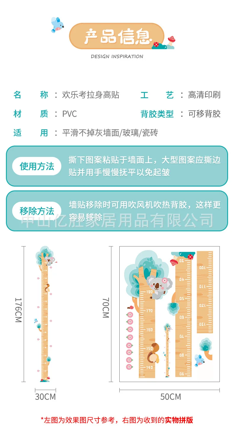 Мультяшные настенные наклейки Koala на дерево, детские измерения роста для детской спальни, детской комнаты, домашний декор, линейка для роста животных