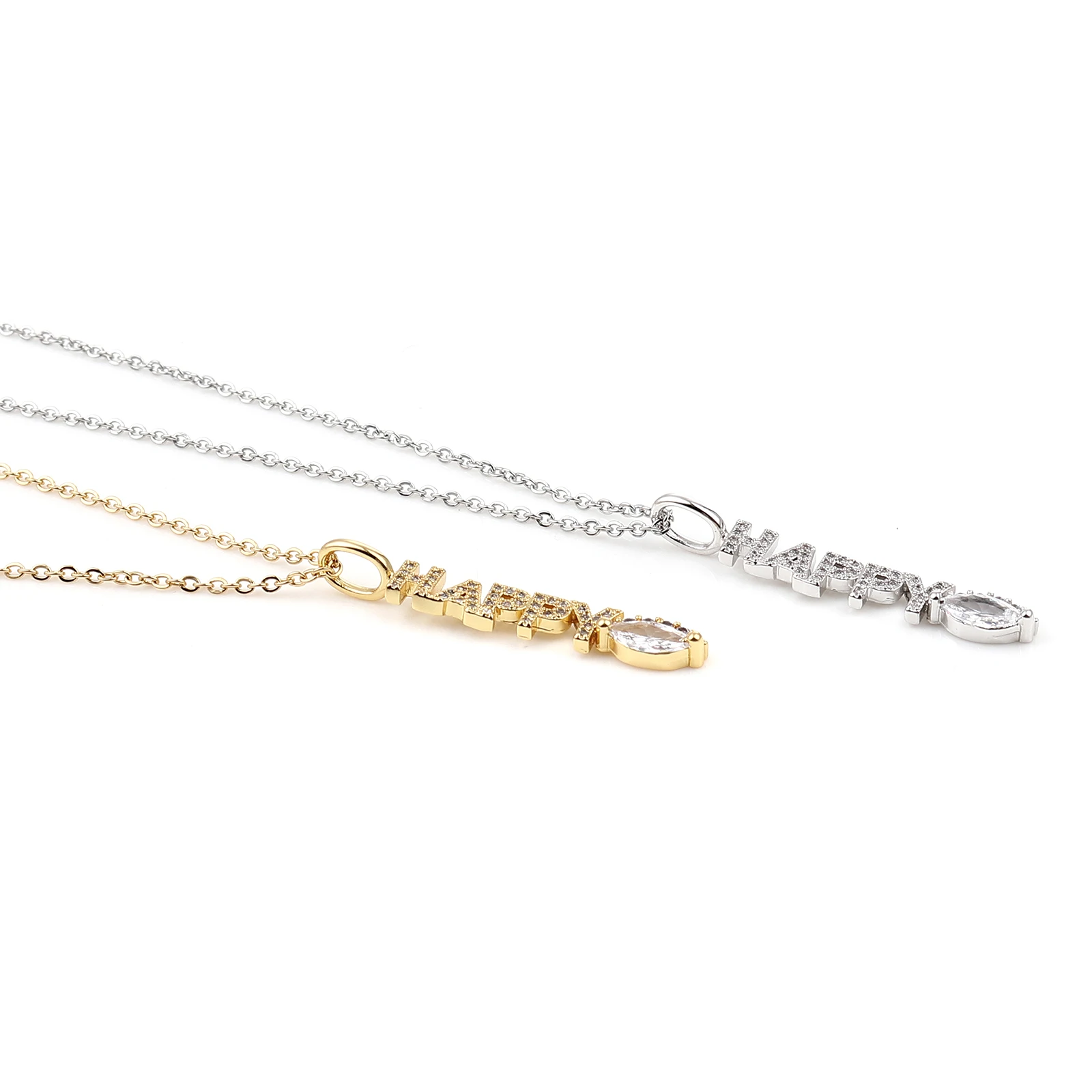 1 шт. 44 см нержавеющая сталь и медь микро подвеска Pave сообщение "Счастливый" кулон для женщин и мужчин ювелирные изделия подарок