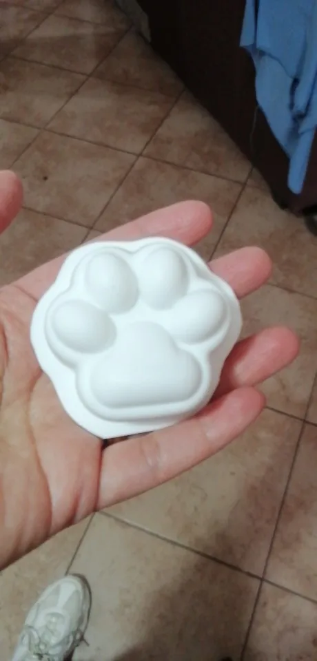 Пришла посылка супер быстро за 3 недели в Канаду. Формочка хорошая без запаха. Вес мыла 43гр, если заливать до конца, но форма позволяет наполнение на половину, что сильно экономит расход основы. Рисунок подушечек глубокий, можно спокойно залить пипеткой или даже из стакана с "носиком" Рекомендую.