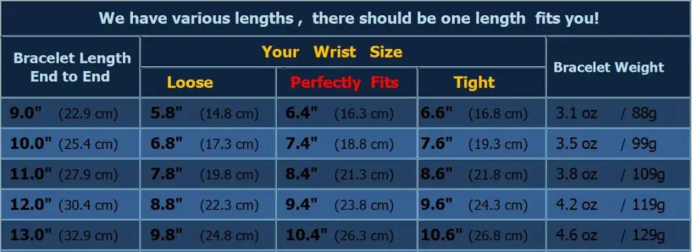 (Если вам нравится более свободный браслет, пожалуйста, убедитесь, что размер вашего запястья близок к размеру свободного кроя)