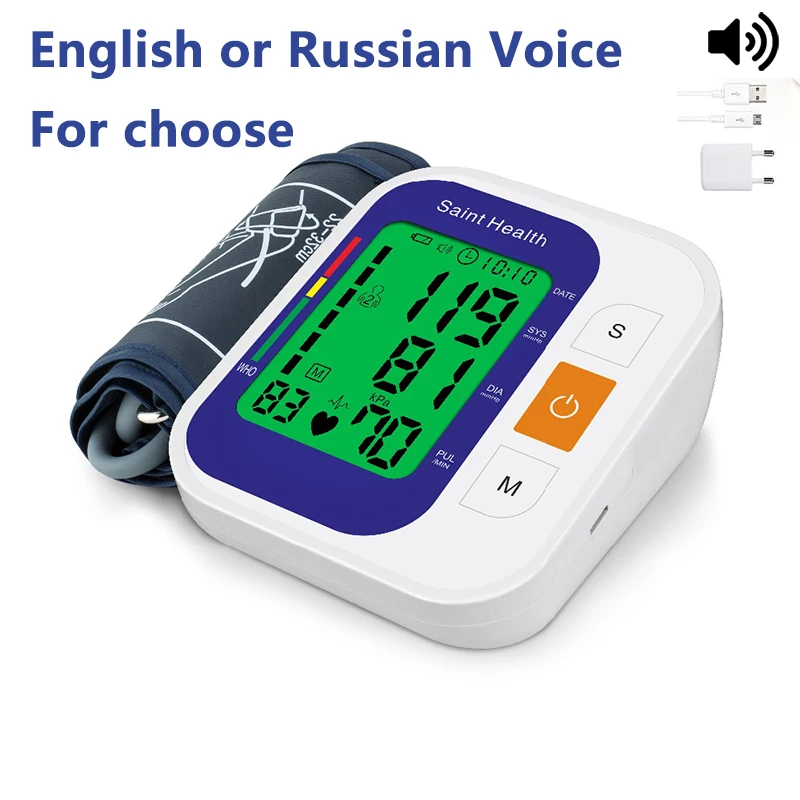 Saint Health gauge automatic тонометр медицинский LCD blood pressure monitor тонометр говтрящий русскиц usb with манжет на танометр медицинский измерение давления часы портативный blood pressure meter