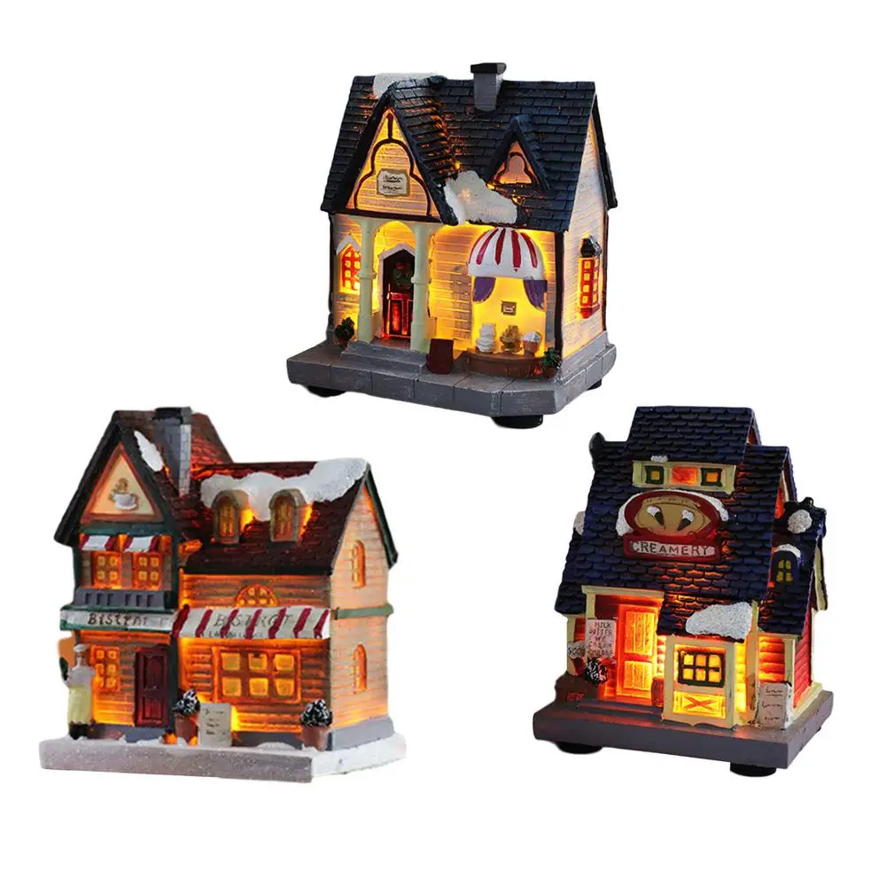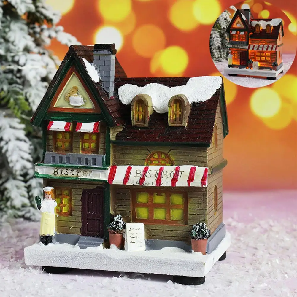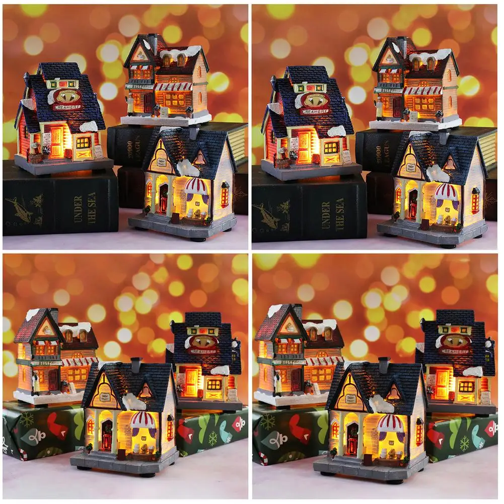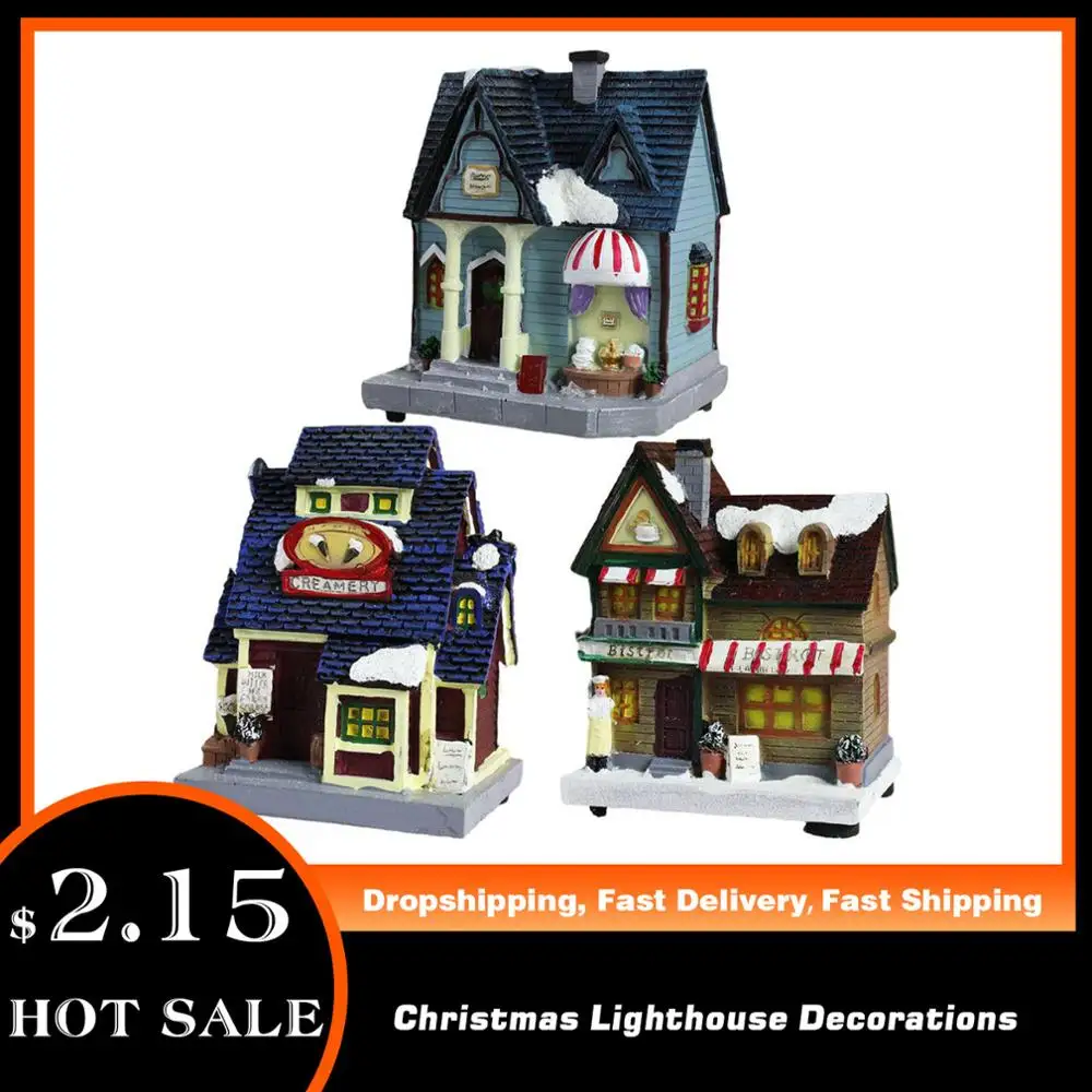 Рождественские украшения, маяк, Рождественская сцена, деревенские дома, город с теплой белой мечтой, европейский стиль, снежный дом, подарок для детей