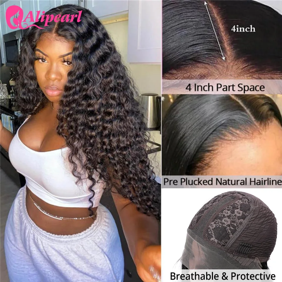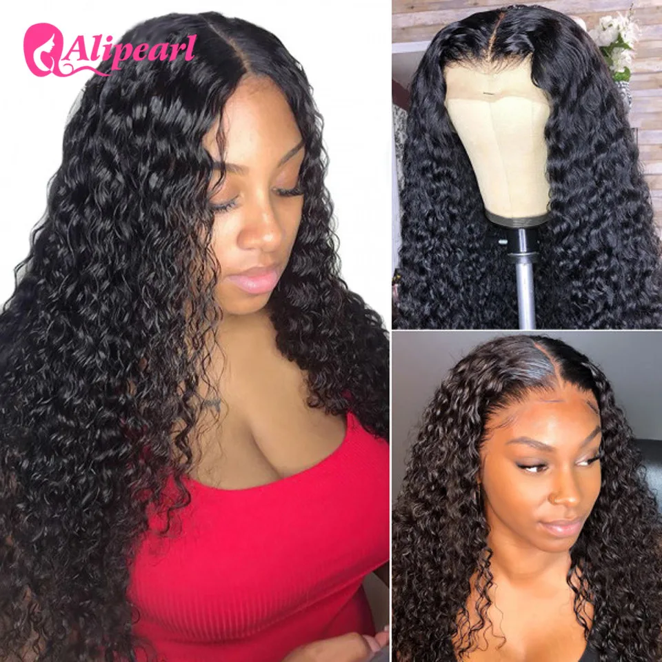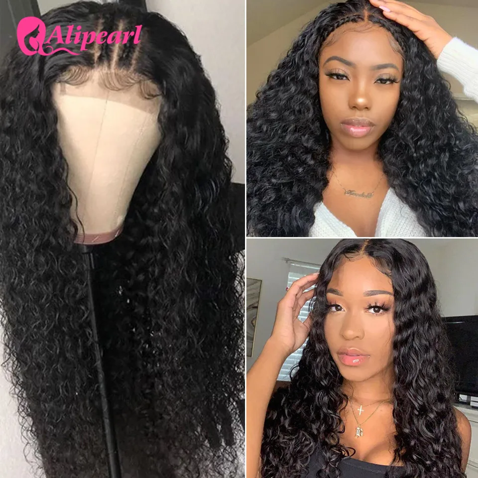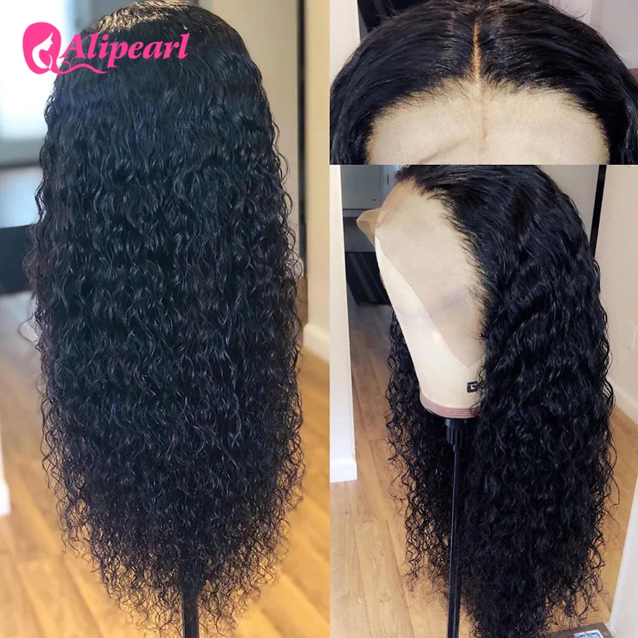 Алиперл волос волна воды человеческие волосы парик 4X4 закрытие парик бразильский T часть кружева парик prepucked для женщин 150% 180% плотность
