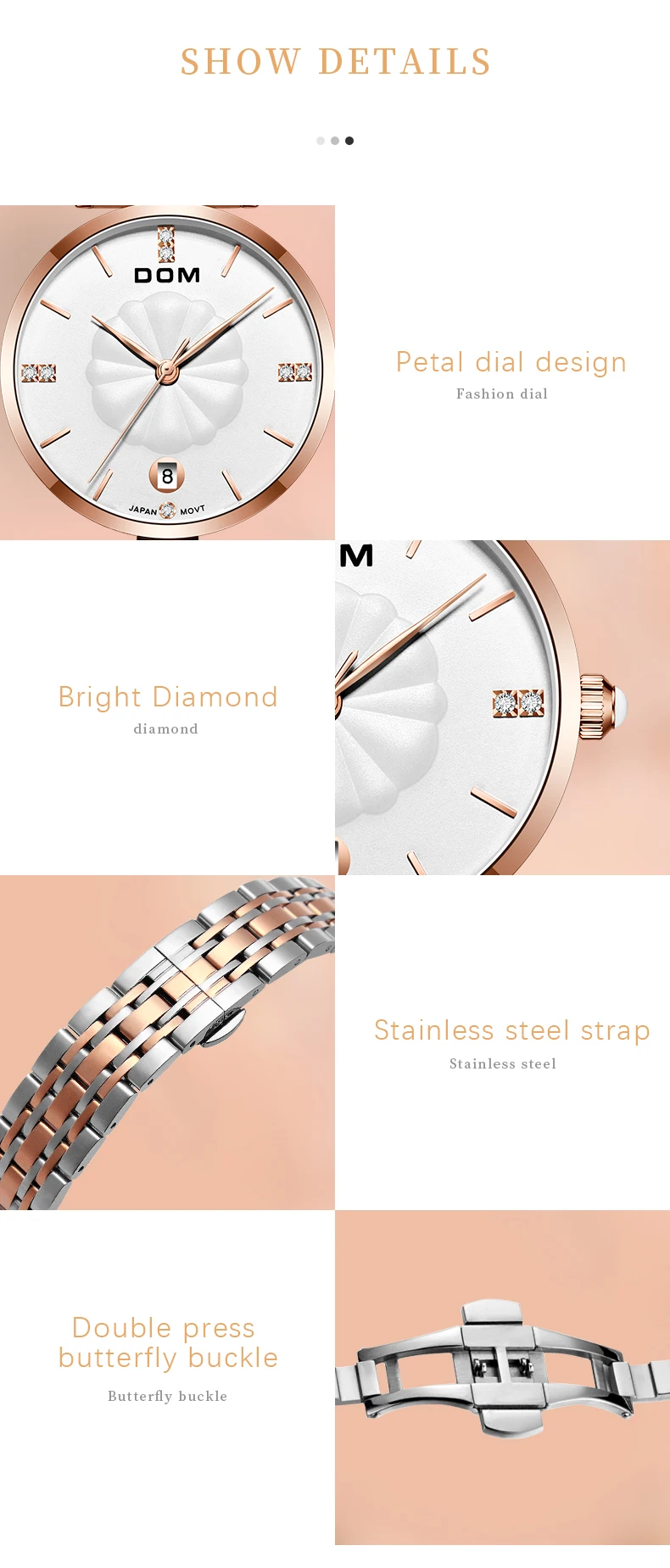 DOM Роскошные модные женские часы, женские часы из нержавеющей стал...