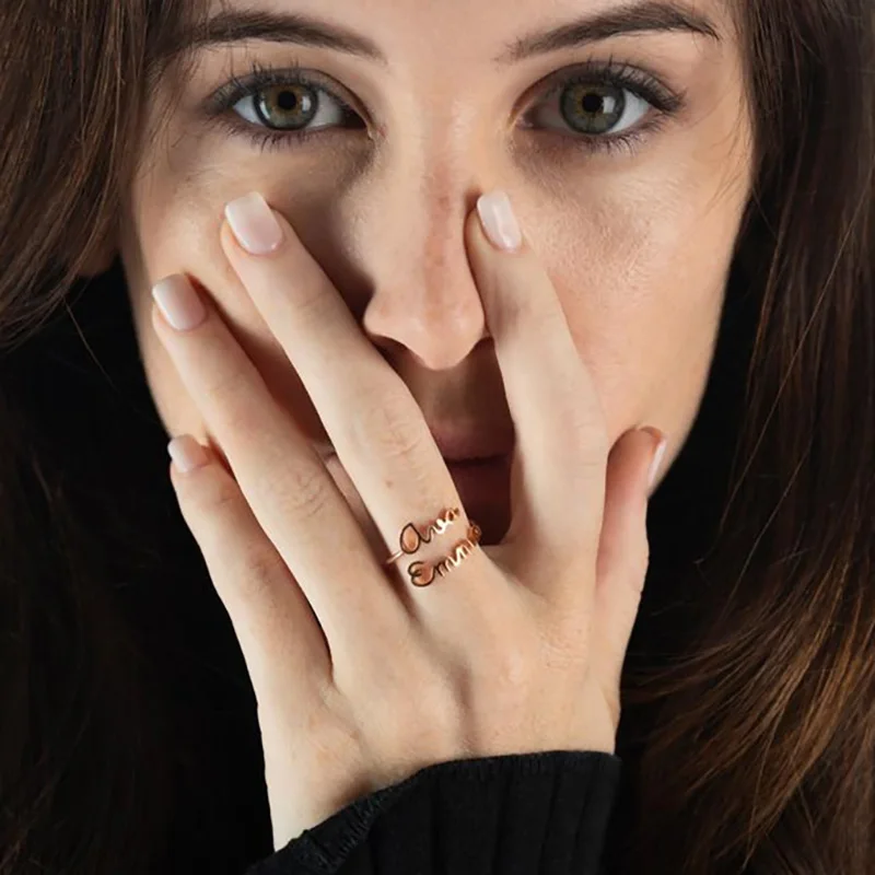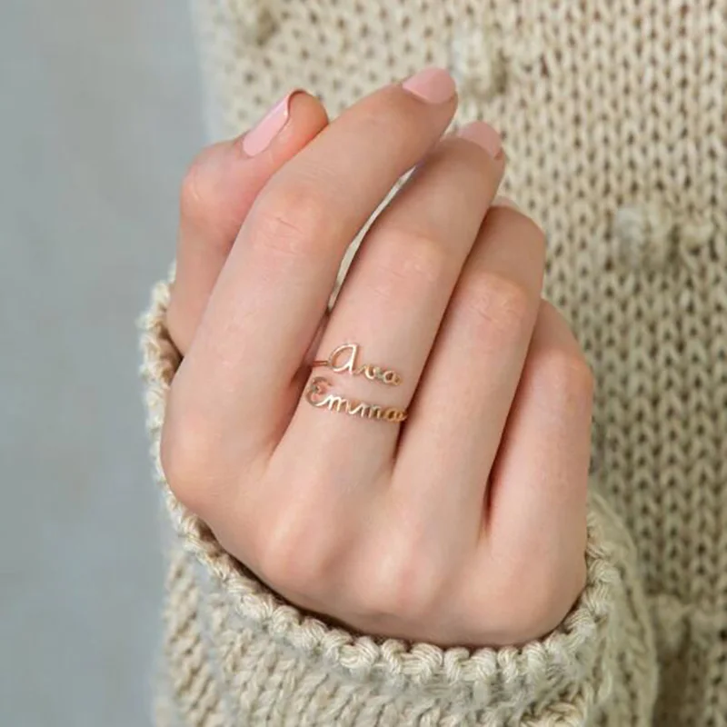 Индивидуальные индивидуальные двойные кольца с именем для женщин, р...
