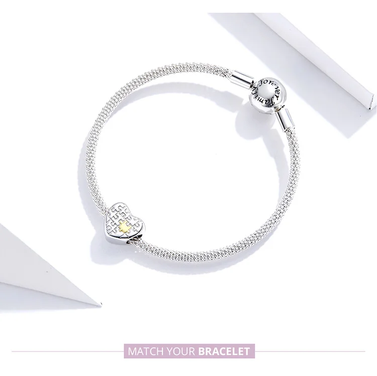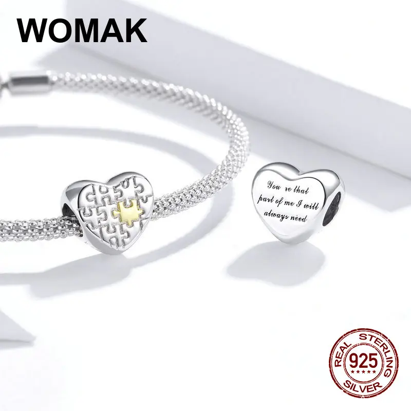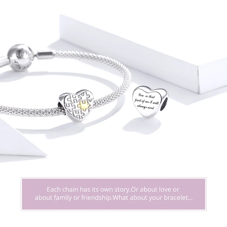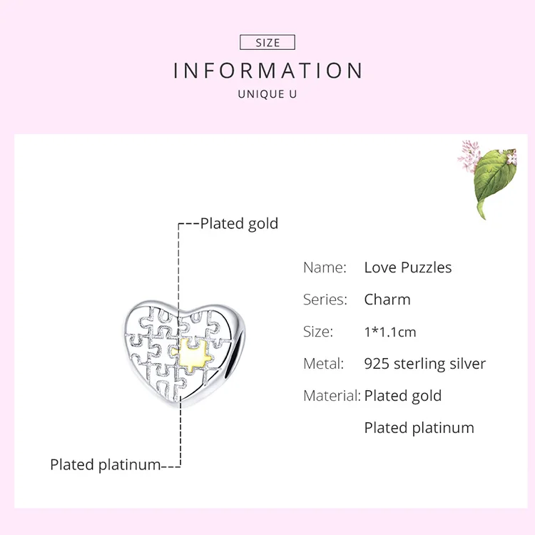 Женский кулон-пазл из серебра 925 пробы с бусинами в форме сердца