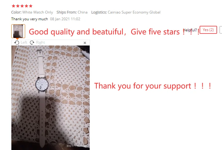 Страна: FR Color: Pink Watch Only Ships From: China Доставка: Cainiao Super Economy Global 12.01.2021