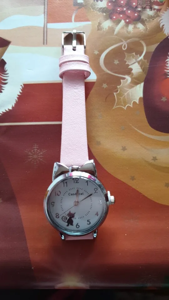 Часы Детские кварцевые с кожаным ремешком, Круглые, розовые, 1 шт.