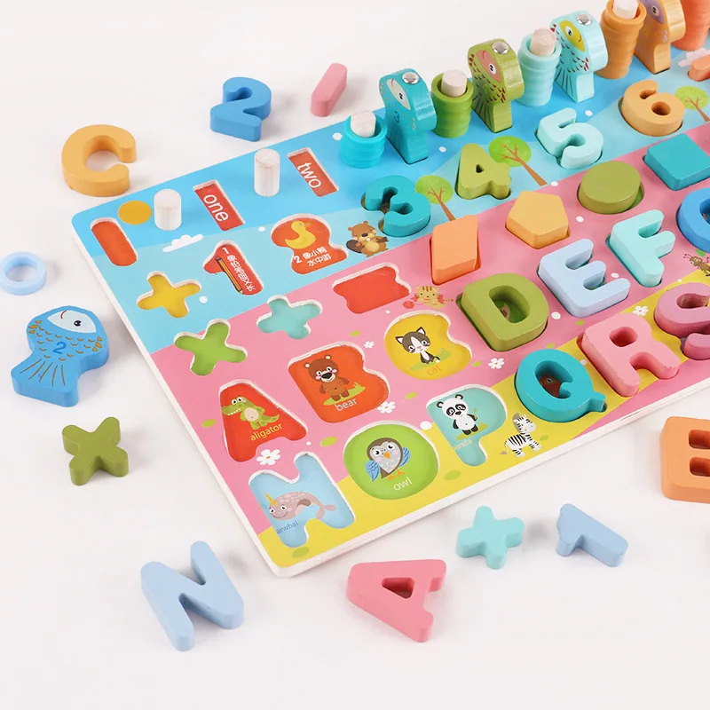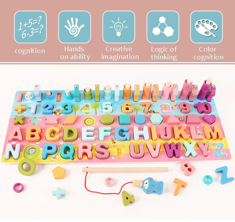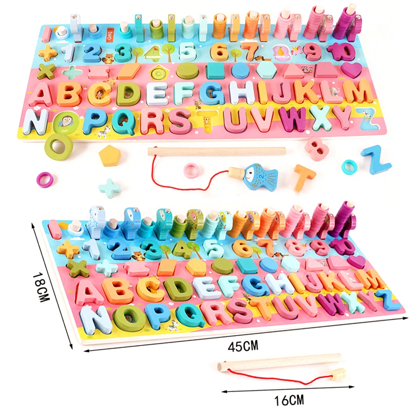 Деревянные игрушки Монтессори для раннего развития детей, цифровой строительный блок, занятая доска, математическая пазл рыбалка, Дошкольная развивающая игрушка
