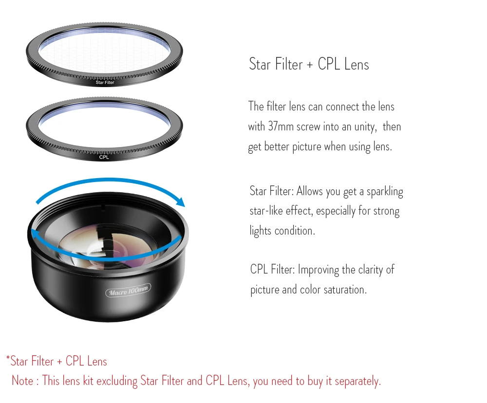 ✔【Профессиональная Макросъемка Lens】Эта модель является профессиональным объективом для макросъемки. Если вы новичок, пожалуйста, закажите другой variant-10x макрообъектив, который будет легче использовать✔【Съемка циферблат】Большинство макрообъективов, продаваемых на рынке, расстояние съемки составляет 10-20 мм (менее 1 дюйма), нужно очень близко к объекту съемки. Этот HD макро-объектив 40-70 мм (1,6-2,8 дюйма)✔【Функция макросъемки 】Крупным планом и макросъемки является одним из самых популярных видов фотографии среди цифровых фотографов сегодня. С макрообъективом вы можете более четко снимать мелкие предметы, это идеально подходит для крупным планом, получить детальную ориентацию с увеличением. Идеально подходит для любителей природы, которые обожают его самые маленькие чудеса, включая цветы, листья и насекомых, а также фотографии в помещении марок, ювелирных изделий, тканей, отпечатков пальцев и фотографий.✔【 Non-slip локомотив clips】Оригинальный дизайн встроенного ободка может защитить ваш телефон от царапин.✔【С силиконовый чехол и портативный рюкзак 】Это удобно для съемки, когда вы выходите, защищая объектив.✔【Простота использования и широкая совместимость 】Универсальный зажим оснащен мягкой противоскользящей накладкой и не оставляет царапин на вашем телефоне, универсальный для iPhone XS Max,XR,X,XS,8,8 Plus,7,7 Plus,6S, смартфоны Samsung/iPad/Android.