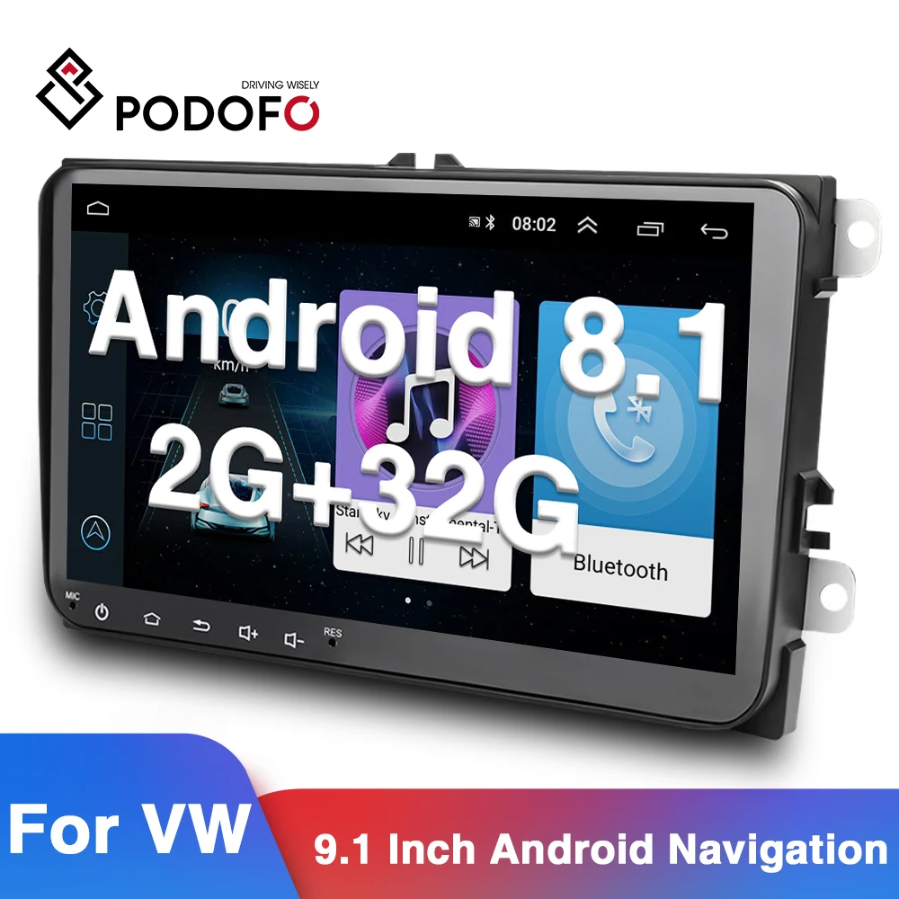 Автомагнитола Podofo Android 8,1, 2 + 32 ГБ, мультимедийный плеер, GPS стерео для Volkswagen Skoda Seat Octavia golf 5 touran passat B6 polo