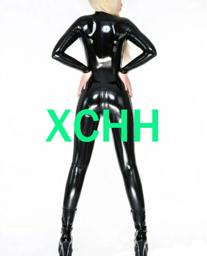 Сексуальный женский Облегающий комбинезон из натурального латекса, женские комбинезоны с молниями спереди (без носков)