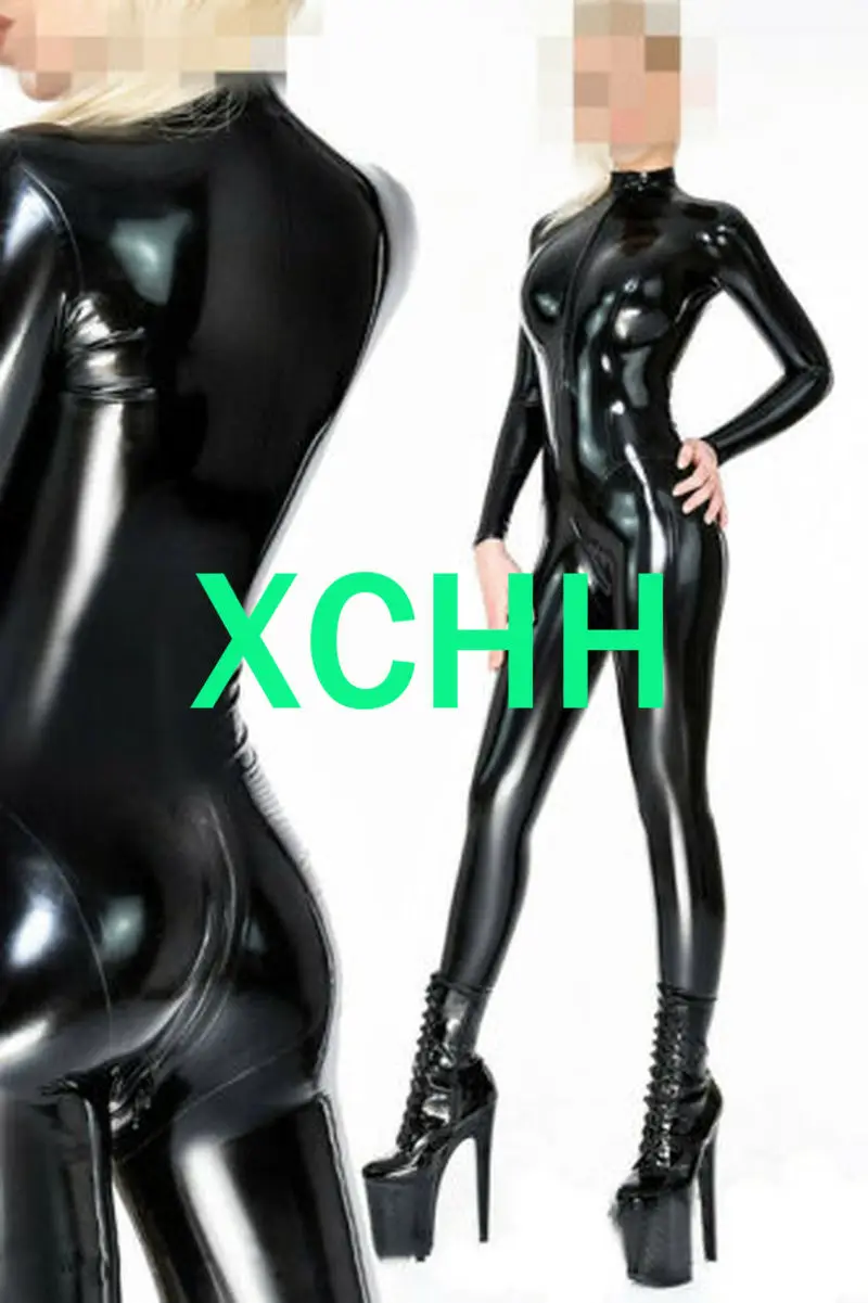 Сексуальный женский комбинезон из натурального латекса, женский комбинезон с молнией спереди (без носков)