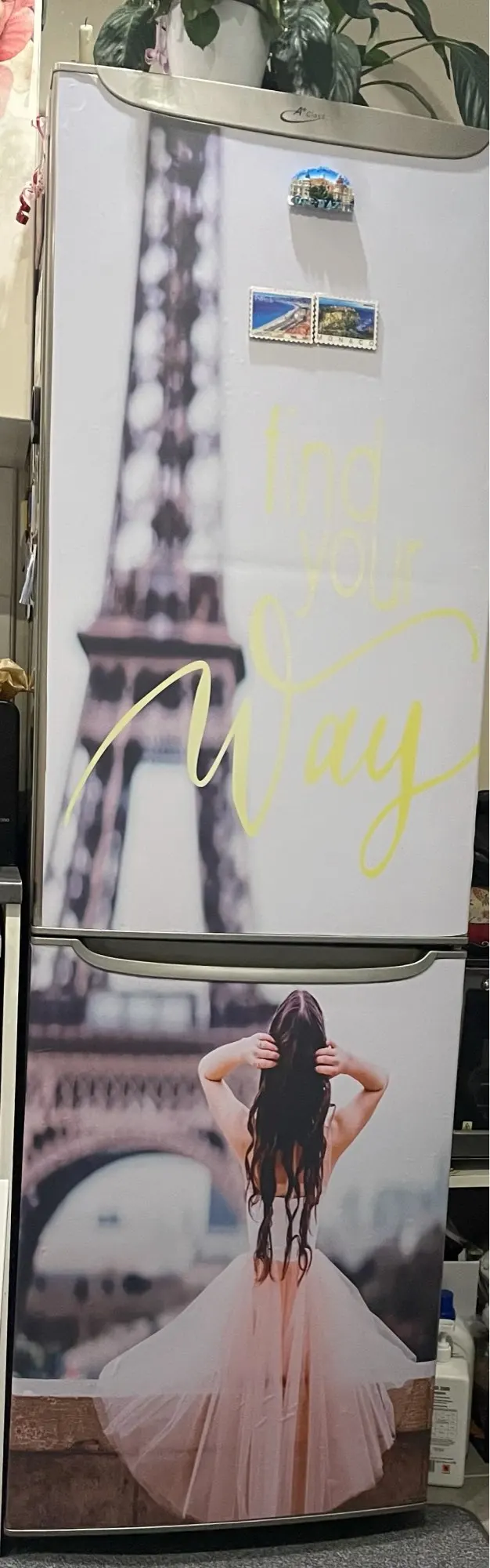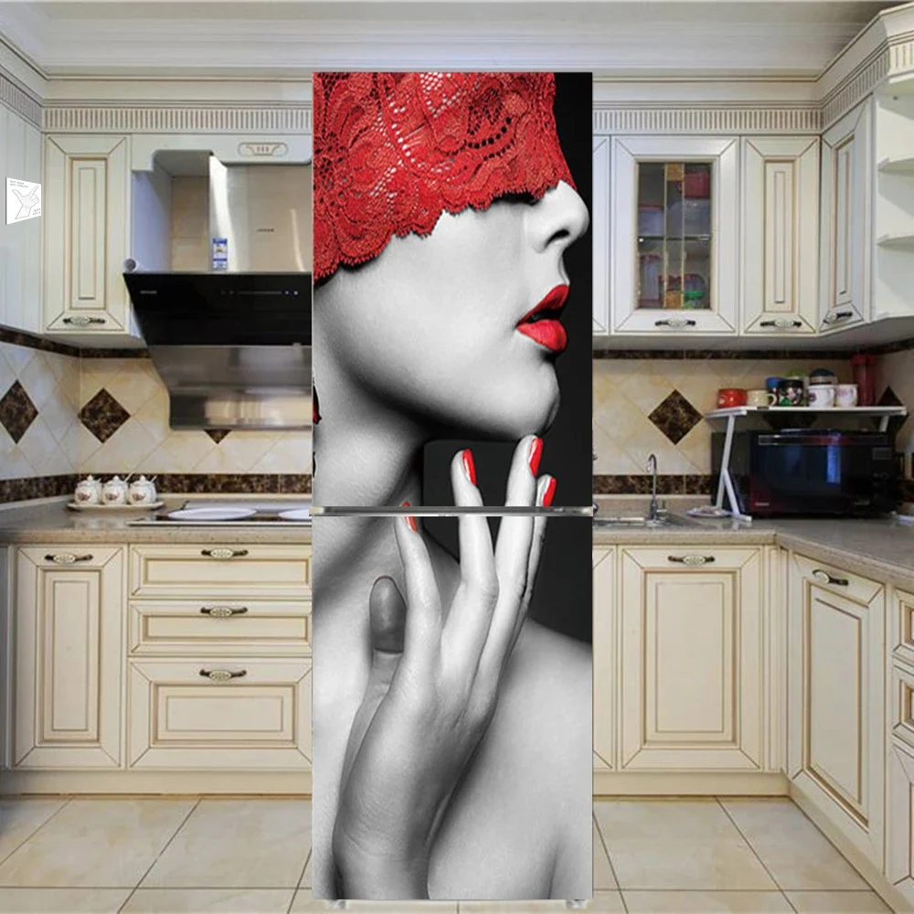 Наклейка на холодильник, виниловая, с рисунком розовой девушки