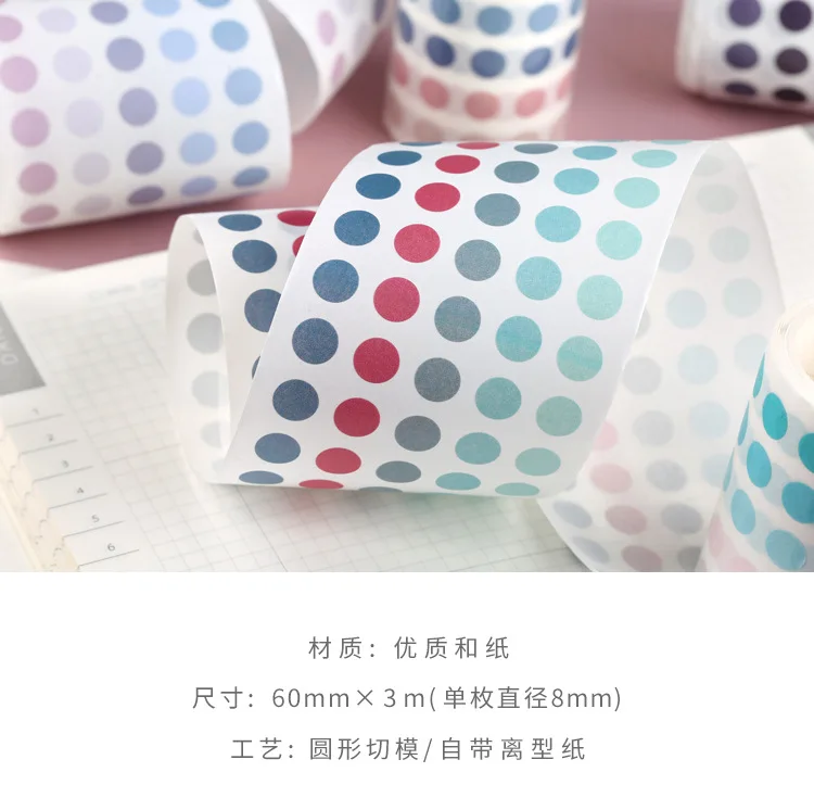 Декоративная маскирующая лента в горошек, 60 мм х 3 м, декоративный Базовый элемент, лента для самостоятельной сборки, скрапбукинг, декоративные наклейки, японские Канцтовары