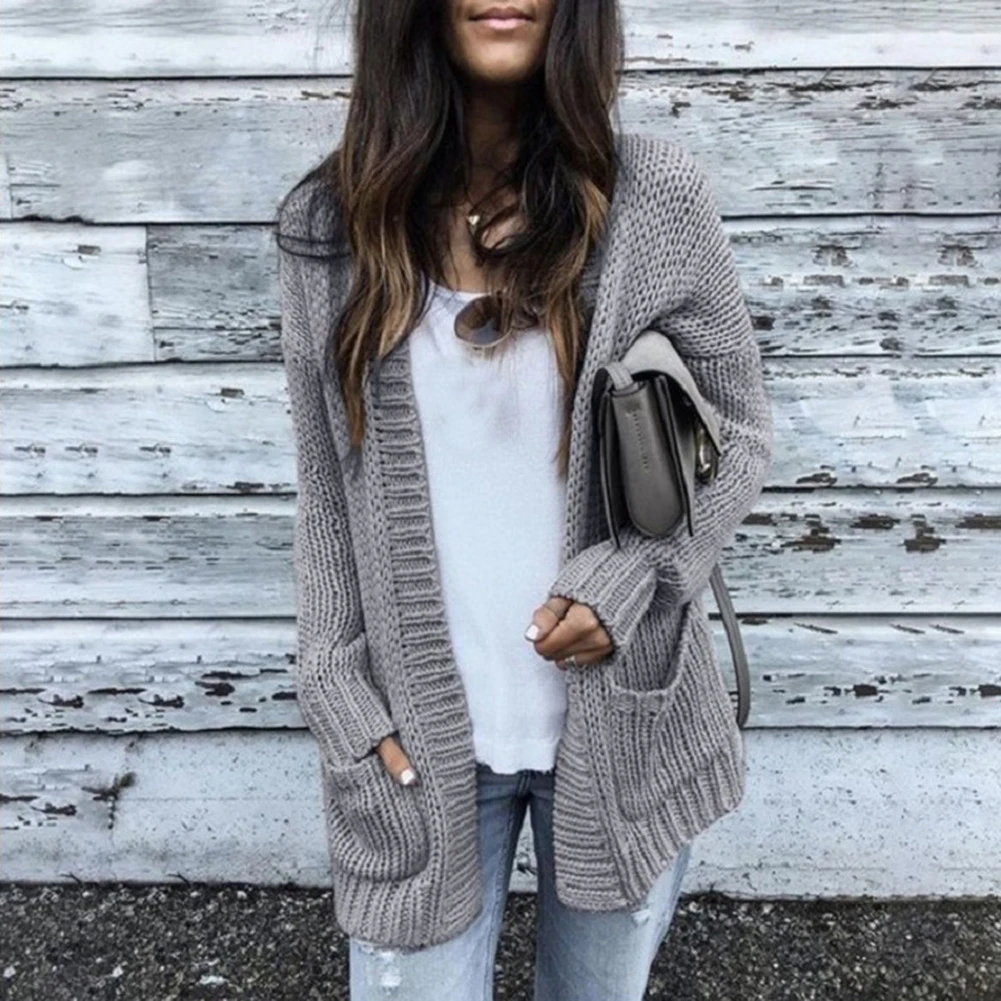 Женский трикотажный кардиган, Однотонный свитер с длинным рукавом, розовая кофта размера xxxl на осень и зиму