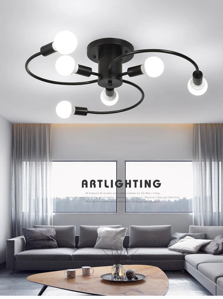 Потолочные светильники Современные несколько светодиодный ных ламп E27 основание черныйбелыйзолотой для гостинойспальни Внутреннее освещение ретро