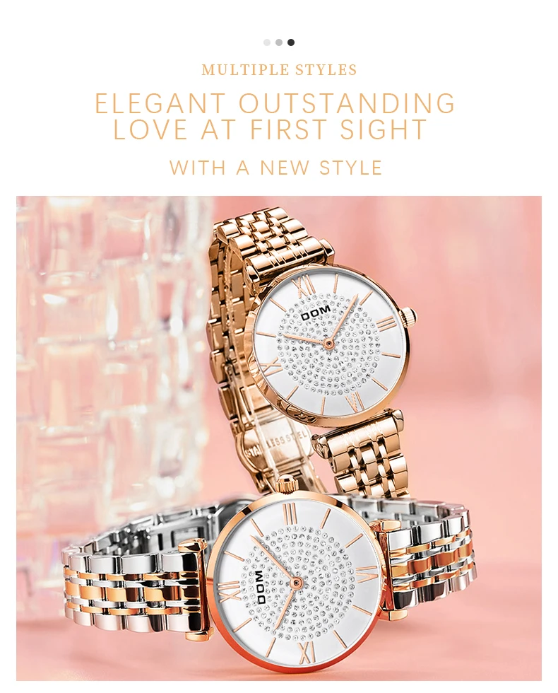 DOM Роскошные модные женские часы, женские часы из нержавеющей стал...