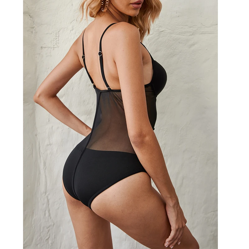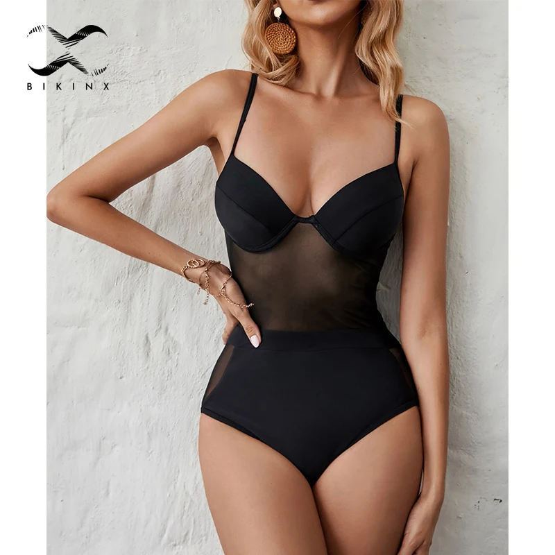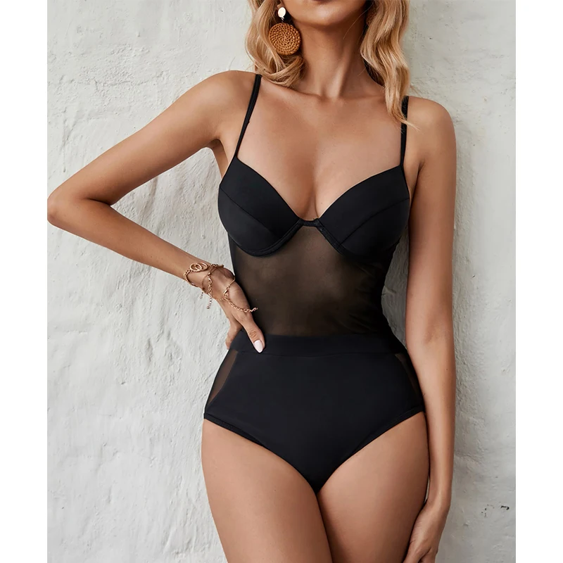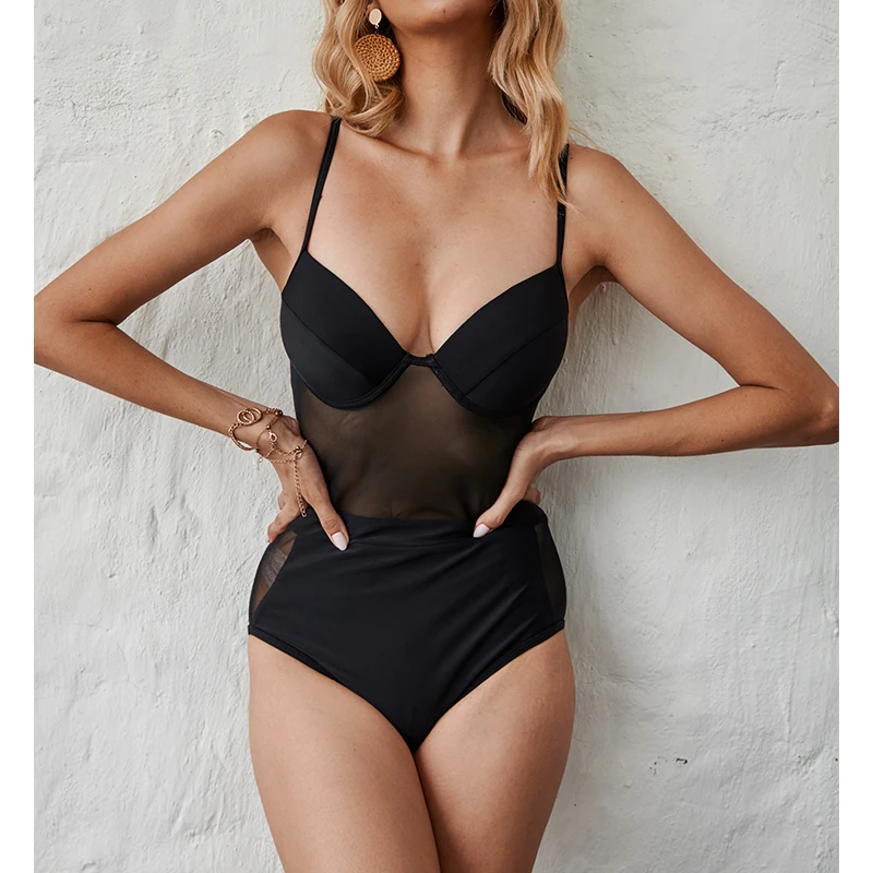 Прозрачный сетчатый купальник, женский слитный костюм с пуш-ап на косточках, купальник с высоким вырезом, сексуальный черный купальный костюм, монокини, боди, Новинка