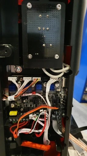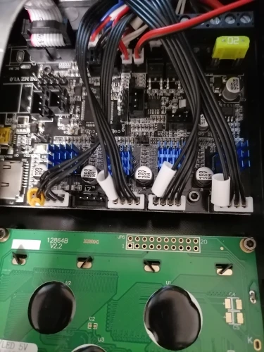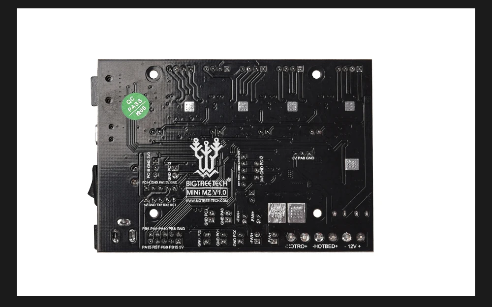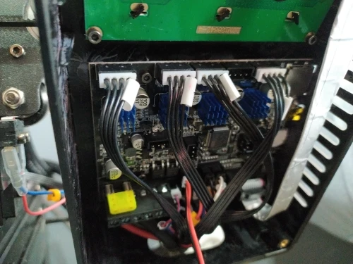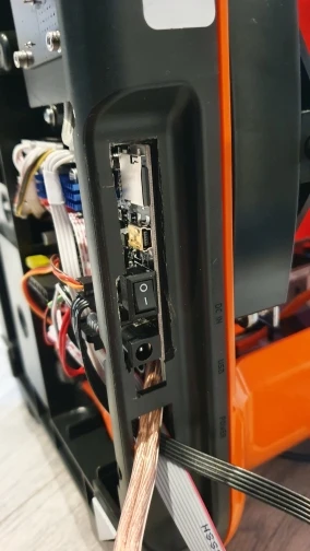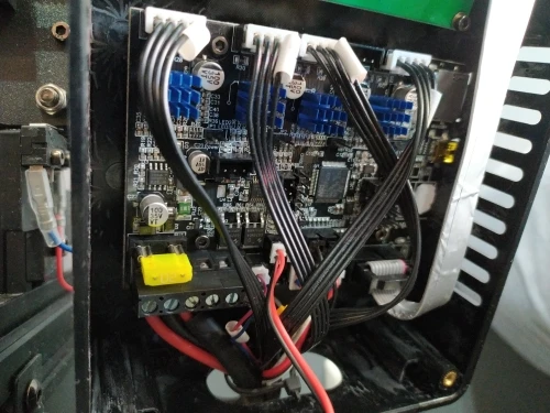 Все работает, принтер стал работать намного тише. Чтобы вкорячить плату в стандартный корпус mz2, пришлось ампутировать гнездо питания джек и выключатель (зачем они там - непонятно). Так же убрал решетку вентилятора для обдува платы.