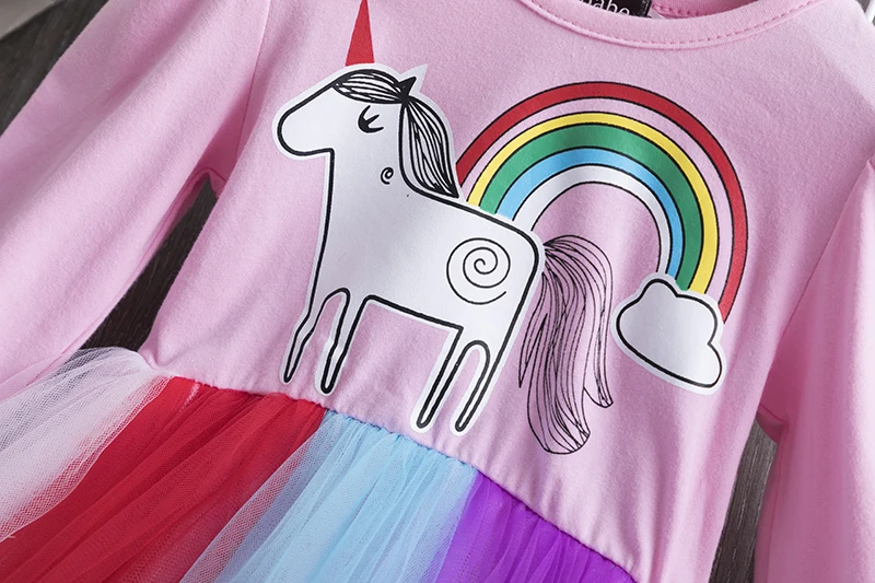 Детские платья для девочек костюм принцессы с длинными рукавами детское платье с коротким рукавом Единорог вечерние платья для девочек; Рождественское платье; От 3 до 8 лет, Vestido