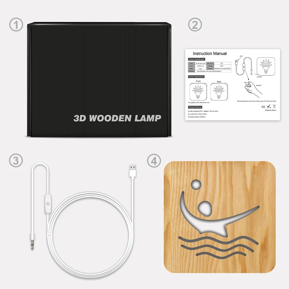 Водное волейбольное моделирование твердой древесины настольная лампа деревянные фары креативные повседневные Рождественские огни в помещении